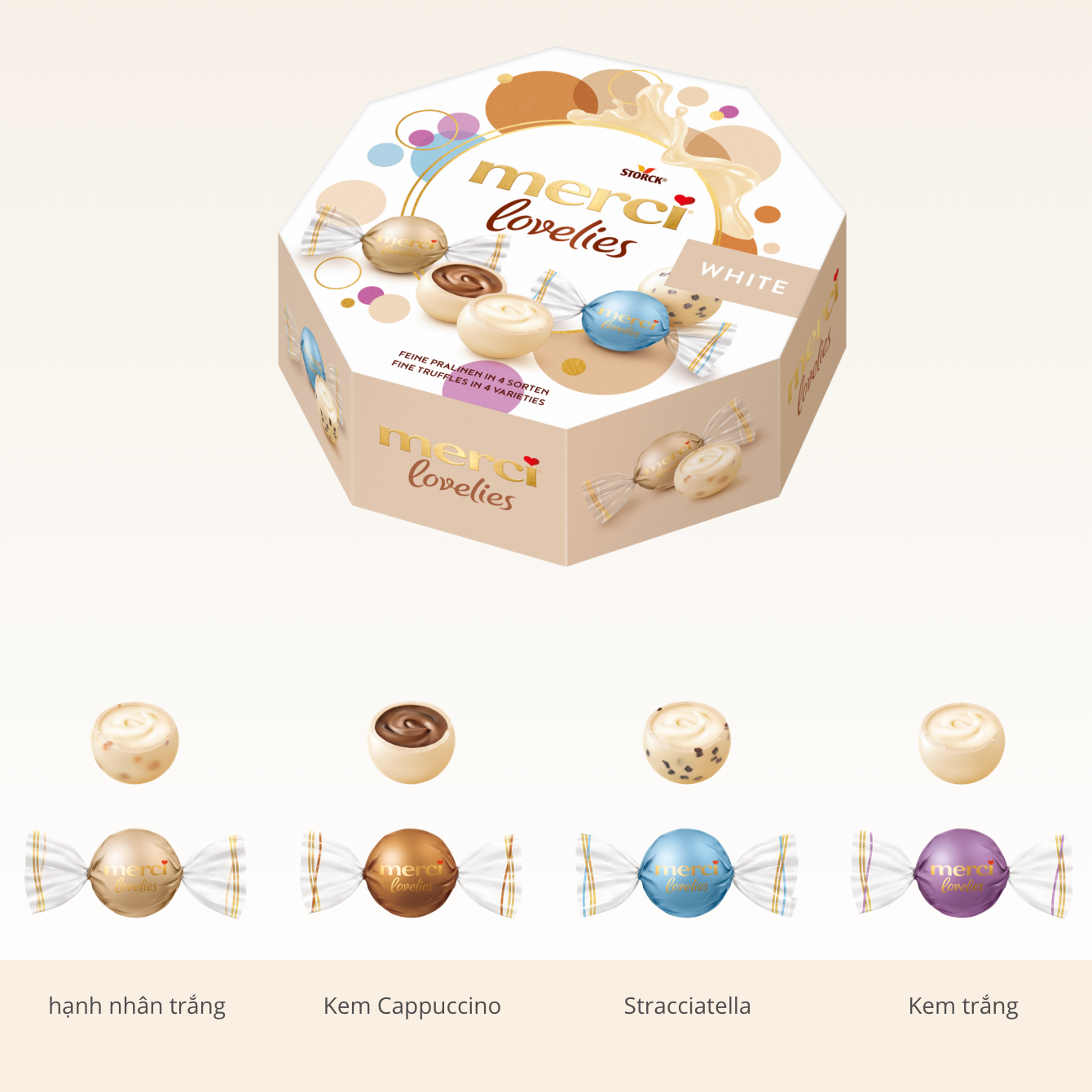 Kẹo socola hảo hạng Merci Petis hộp lục giác Lovelies White - Hộp 185gr (7)