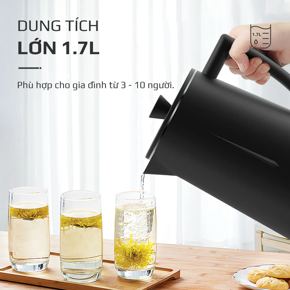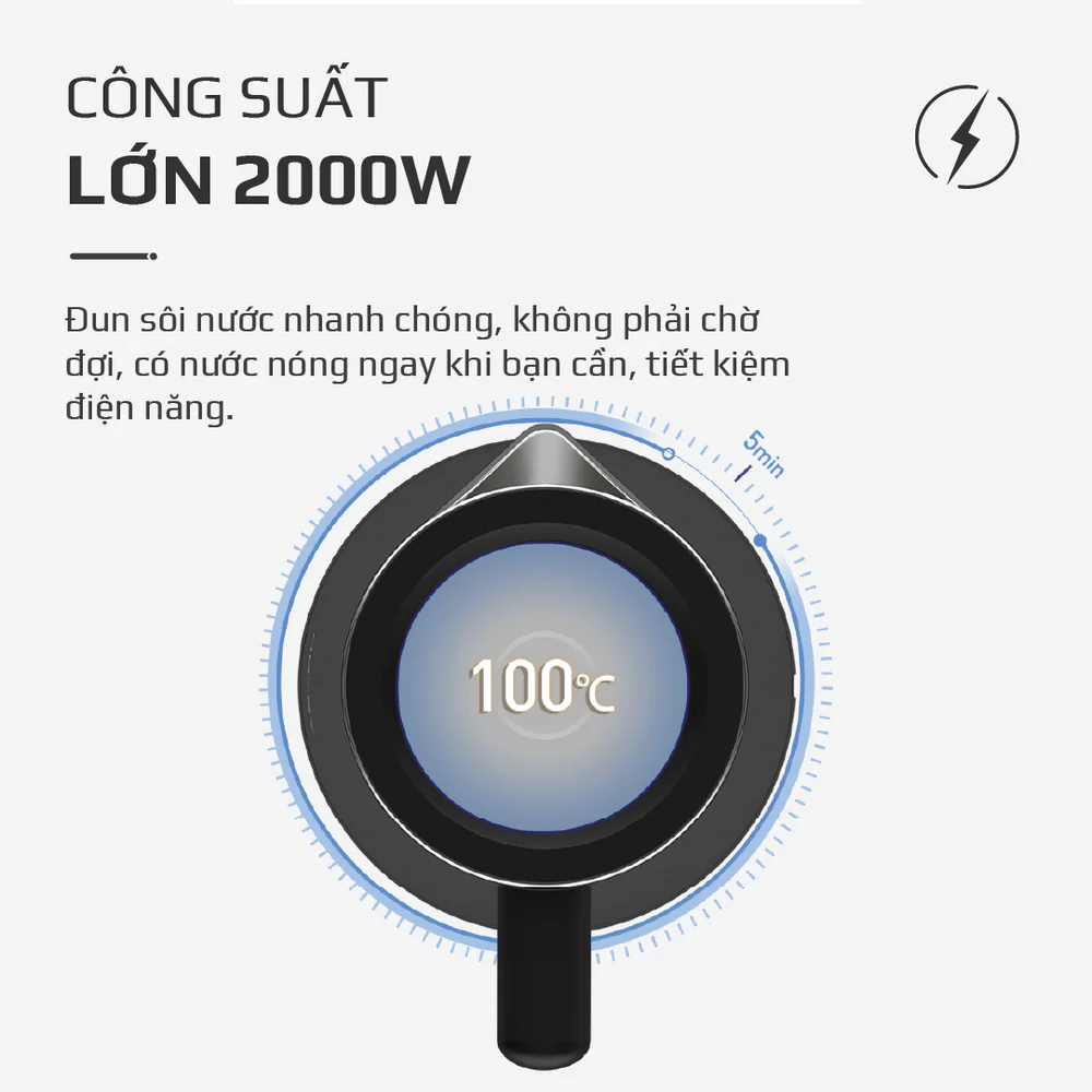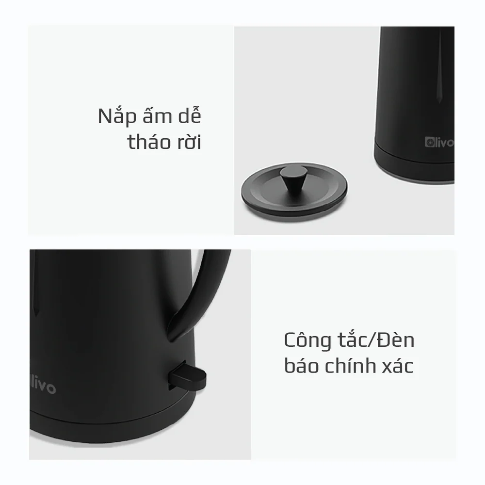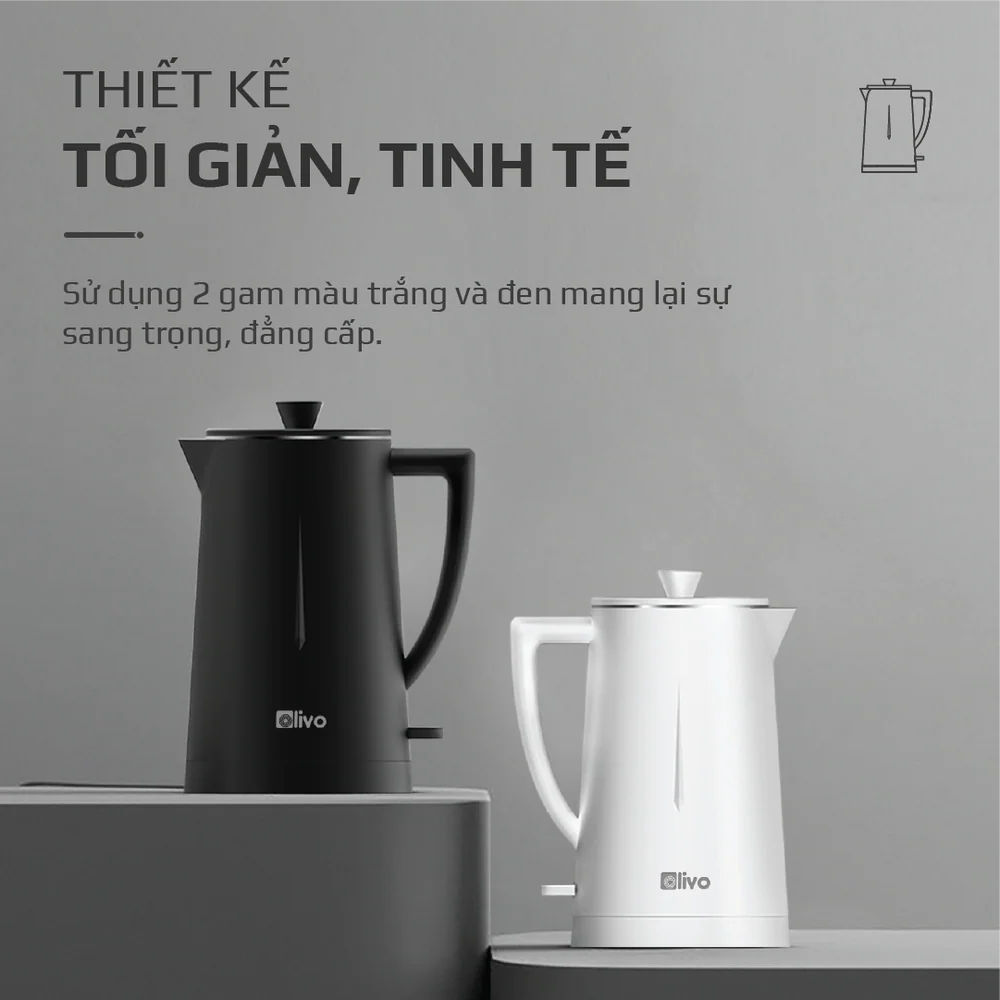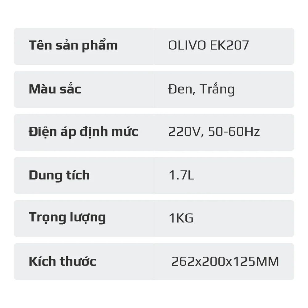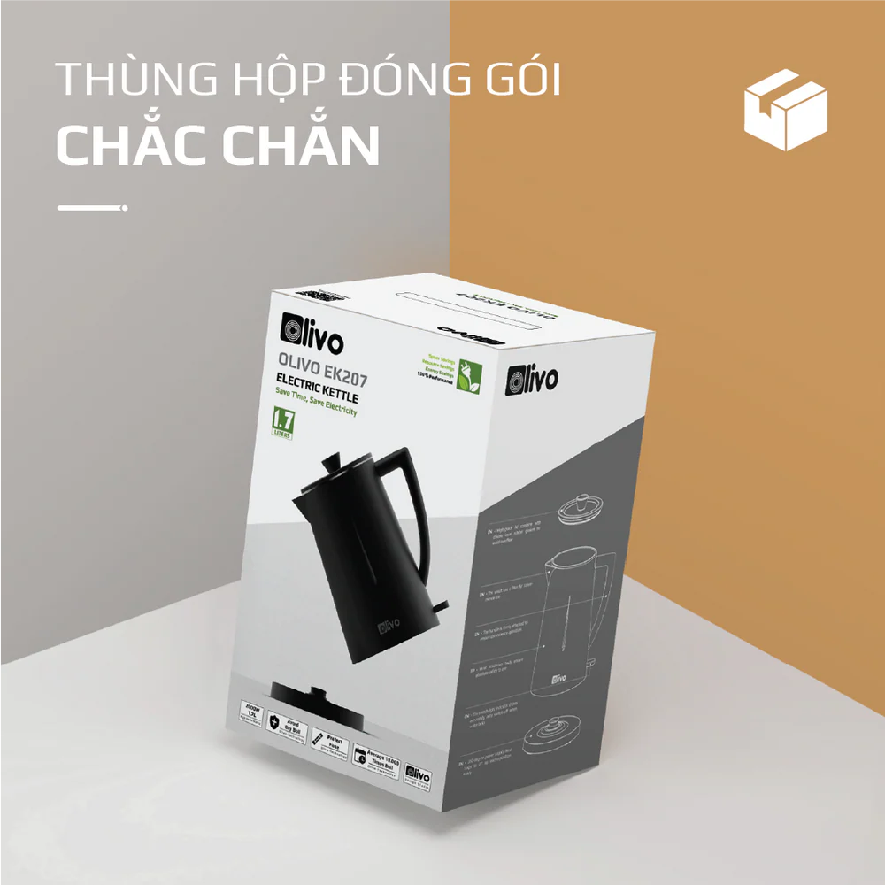 Ấm Siêu Tốc OLIVO EK207 – Thiết Kế Tối Giản Sang Trọng, Bộ Điều Khiển Strix Siêu Bền, Dung Tích 1.7L, Công Suất Lớn 2000W
