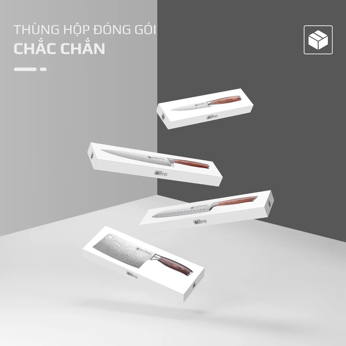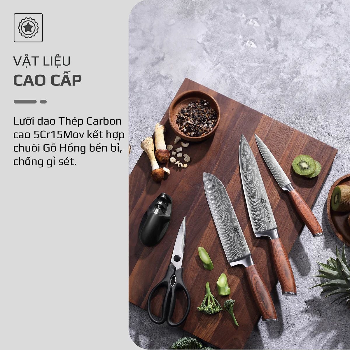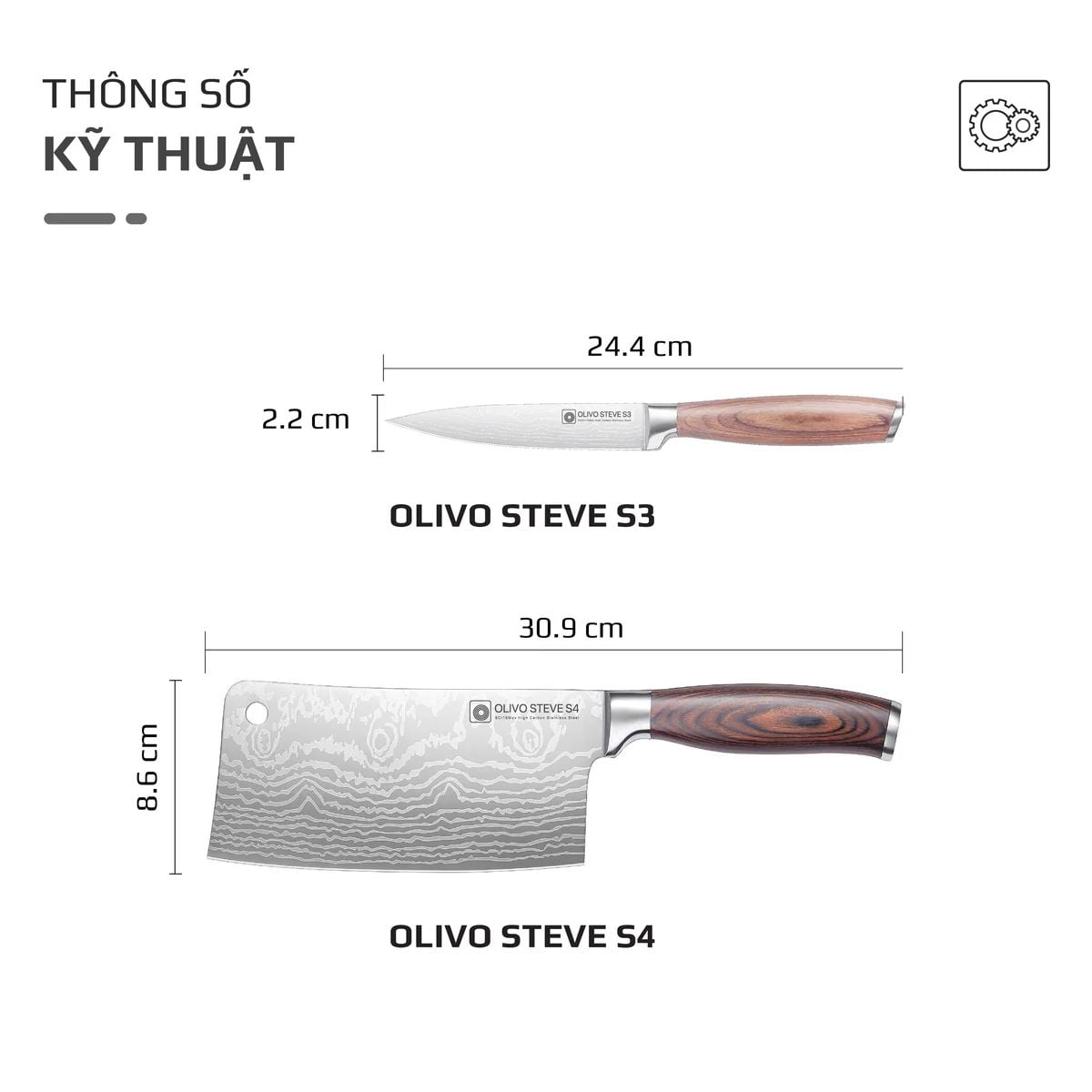 Bộ Dao 4 Món OLIVO STEVE - Vật Liệu Cao Cấp - Chuôi Gỗ Hồng - Thiết Kế Công Thái Học - Lưỡi Dao Sắc Bén