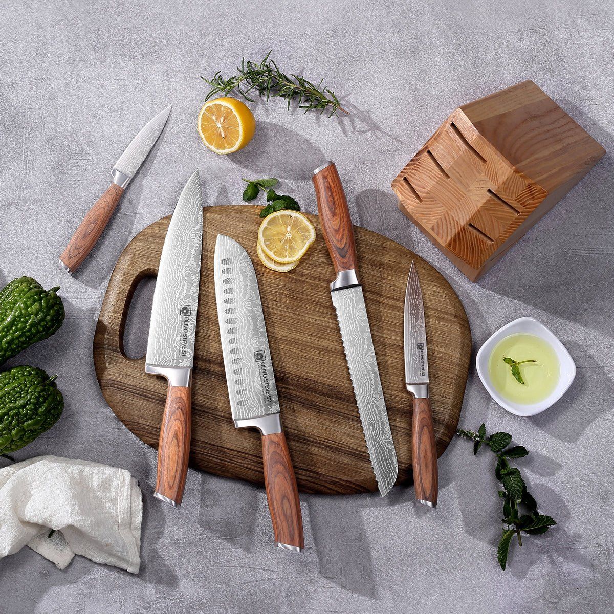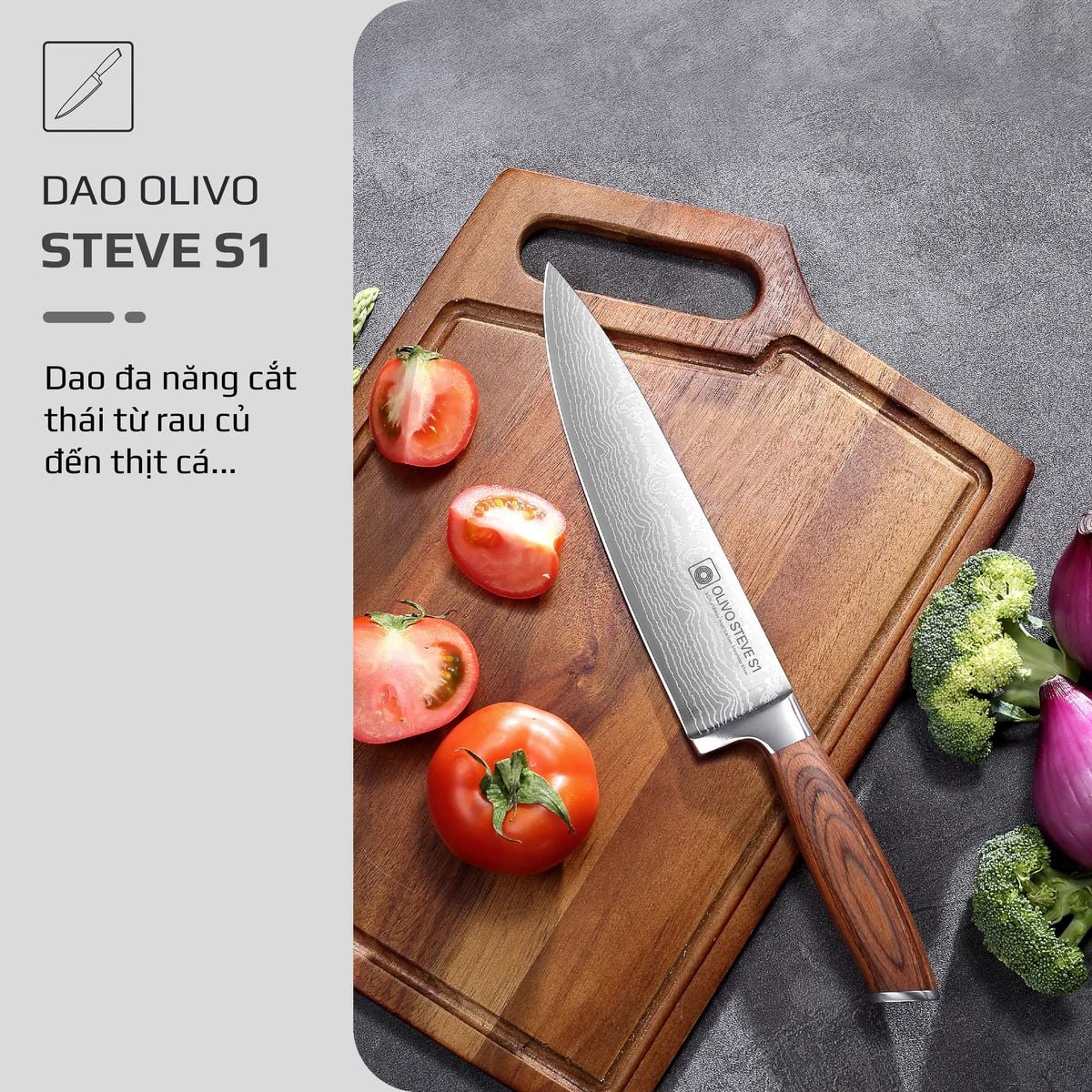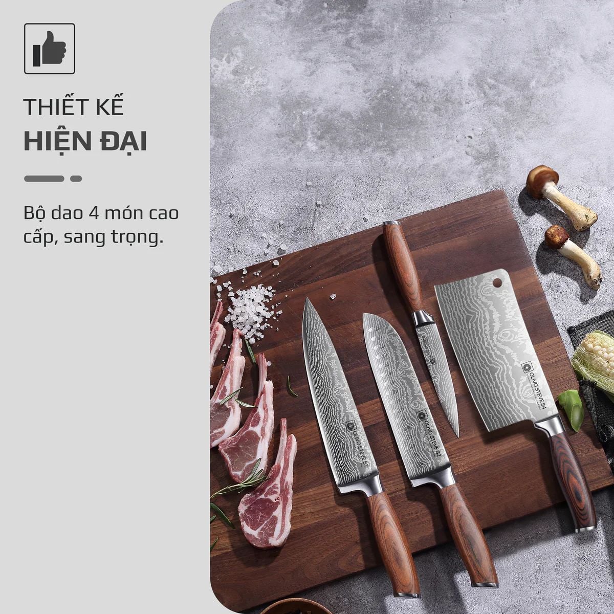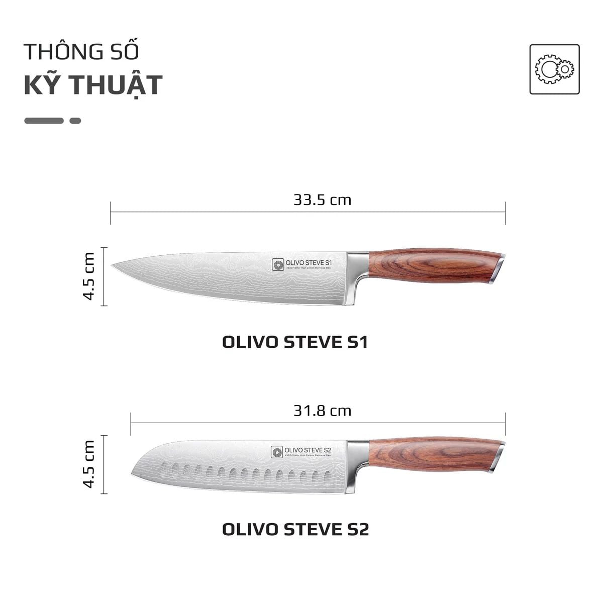 Bộ Dao 4 Món OLIVO STEVE - Vật Liệu Cao Cấp - Chuôi Gỗ Hồng - Thiết Kế Công Thái Học - Lưỡi Dao Sắc Bén