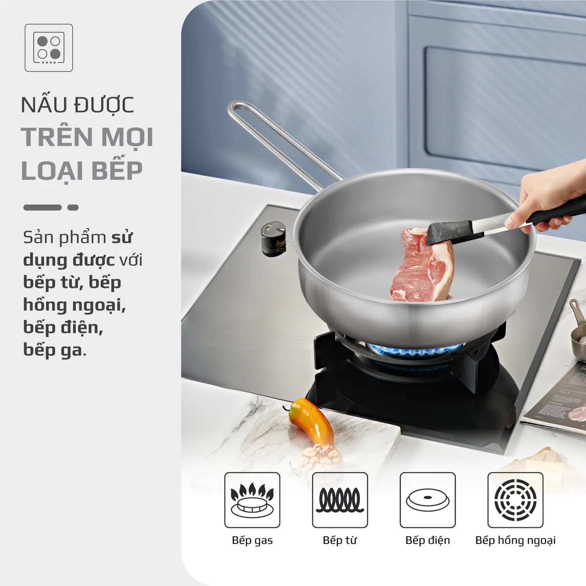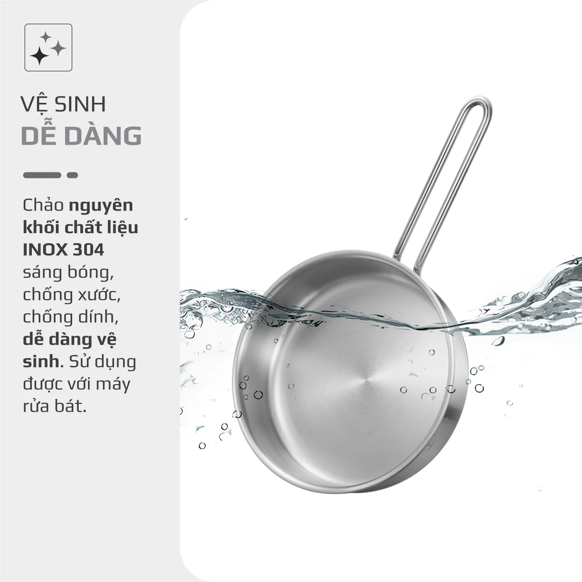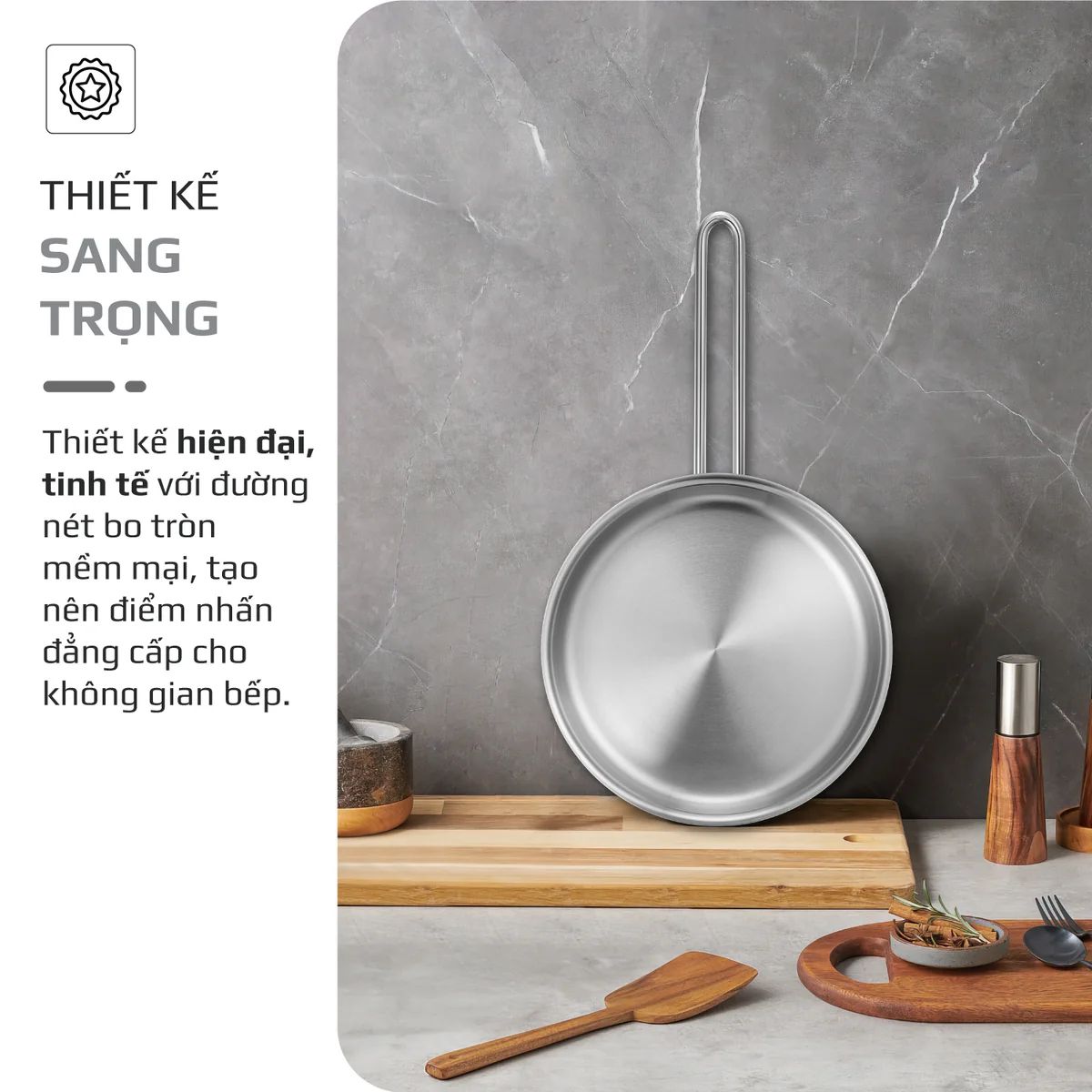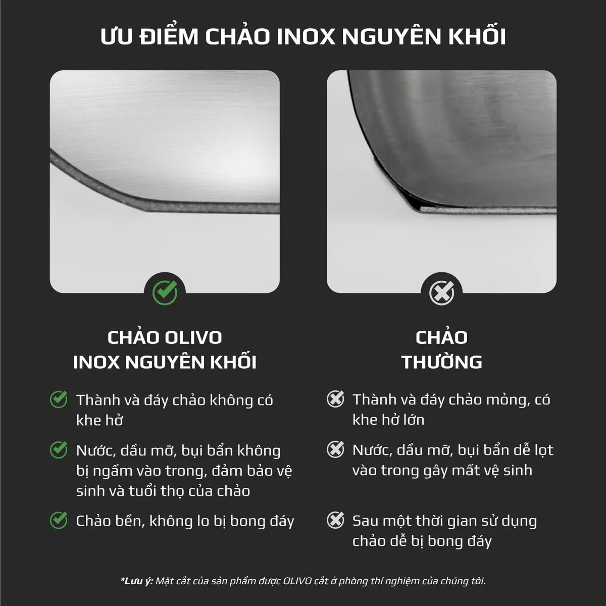 CHẢO INOX OLIVO P2055 – Chống Dính Tự Nhiên, Đường Kính 20cm, Sâu Lòng 5.5cm, Nấu Được Trên Mọi Loại Bếp