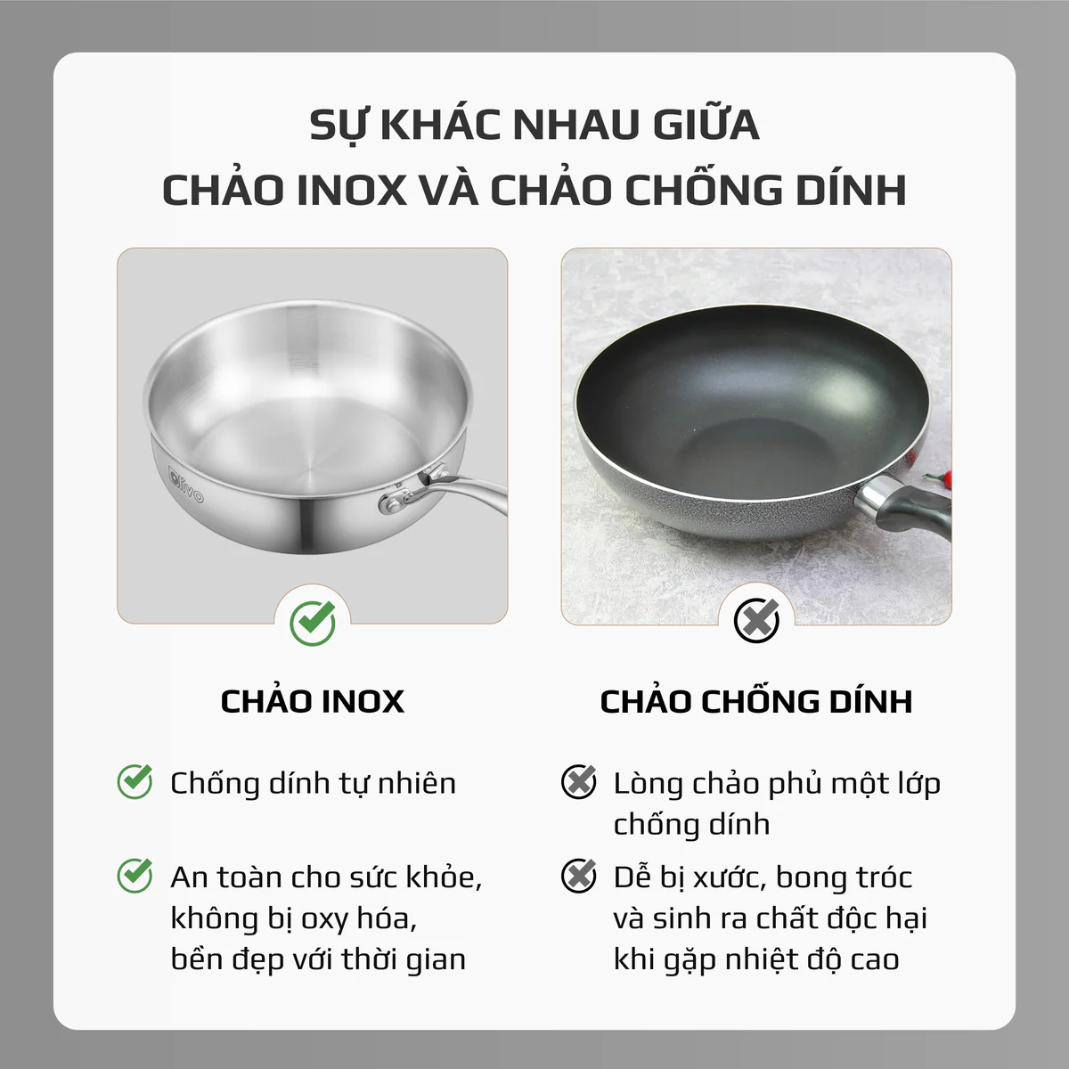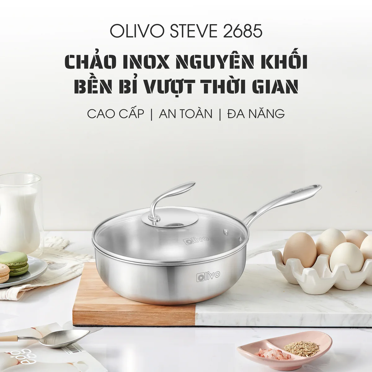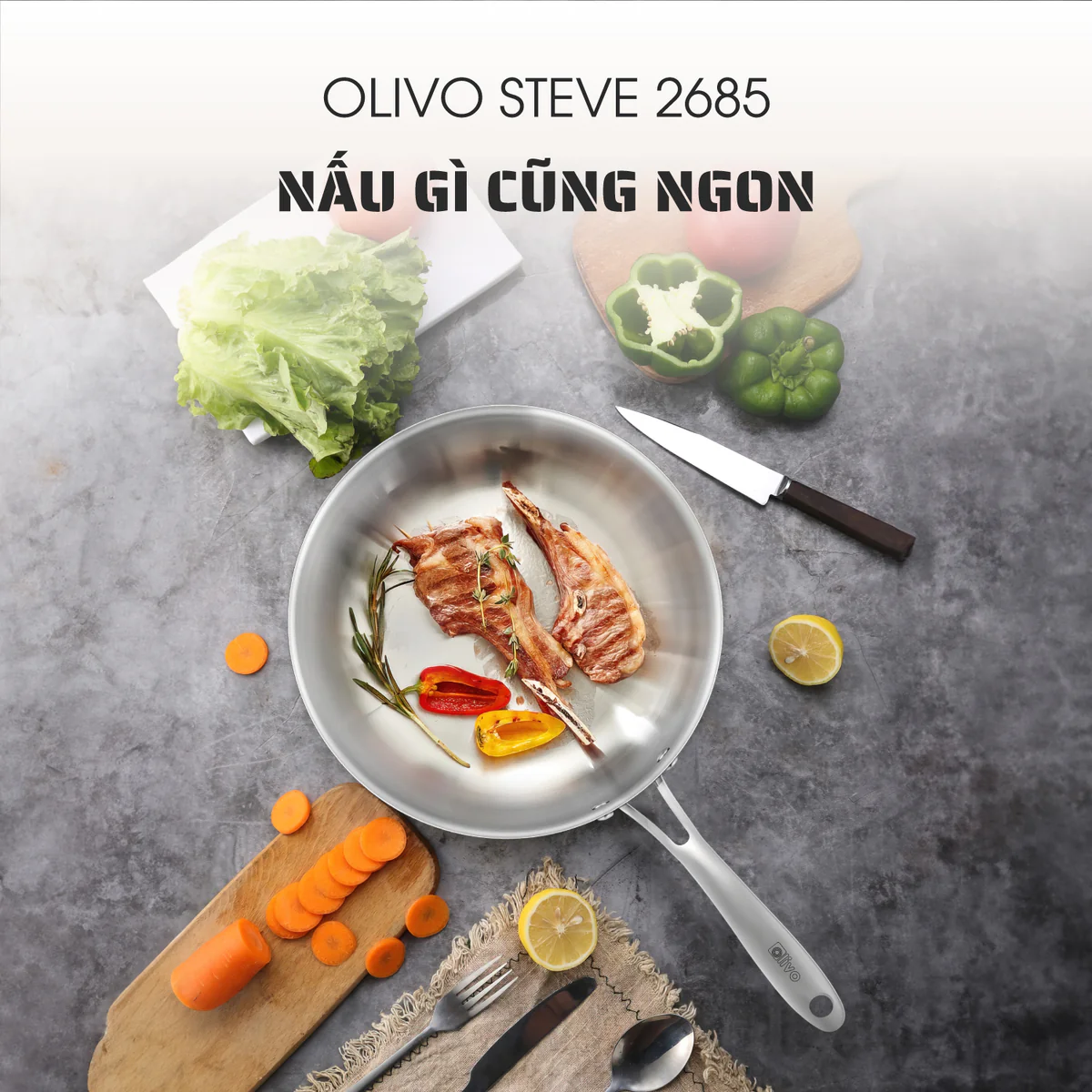 Chảo Inox OLIVO STEVE 2685 – Chống Dính Tự Nhiên, Đáy 3 Lớp, Đường Kính 26cm, Sâu 8.5cm – Nấu Trên Mọi Loại Bếp