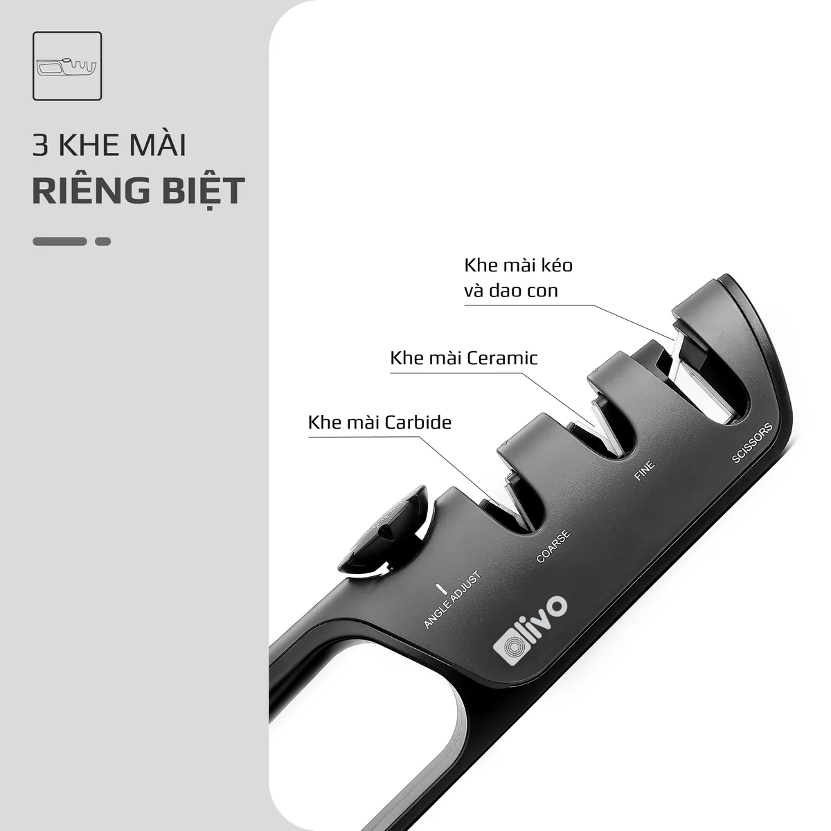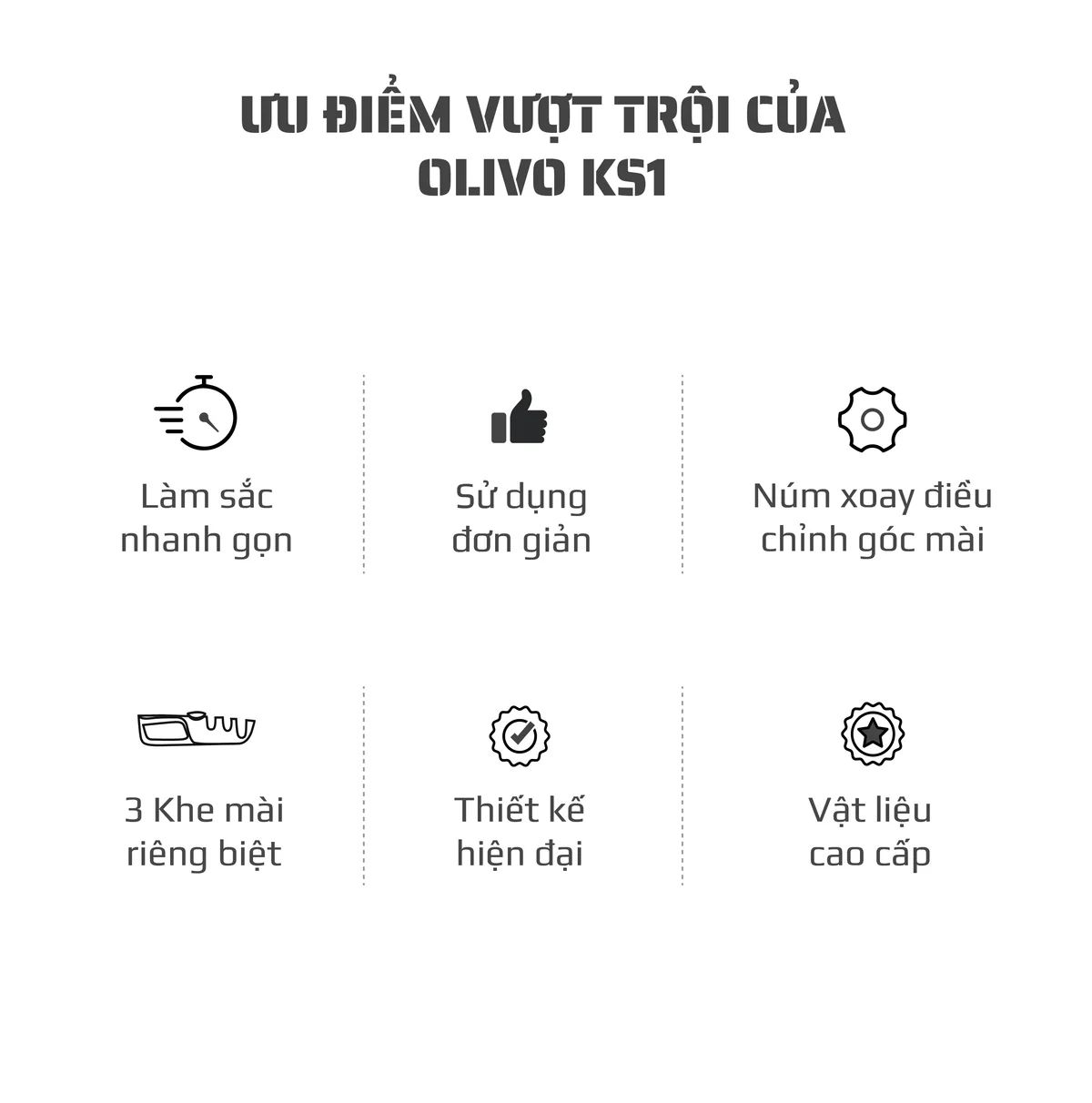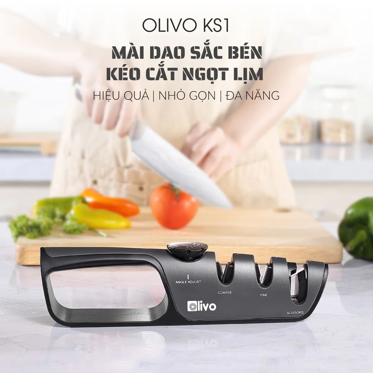 Dụng Cụ Mài Dao Kéo OLIVO KS1 - Làm Sắc Nhanh - 3 Khe Mài Riêng Biệt - Núm Xoay Điều Chỉnh Góc Mài - Dễ Sử Dụng
