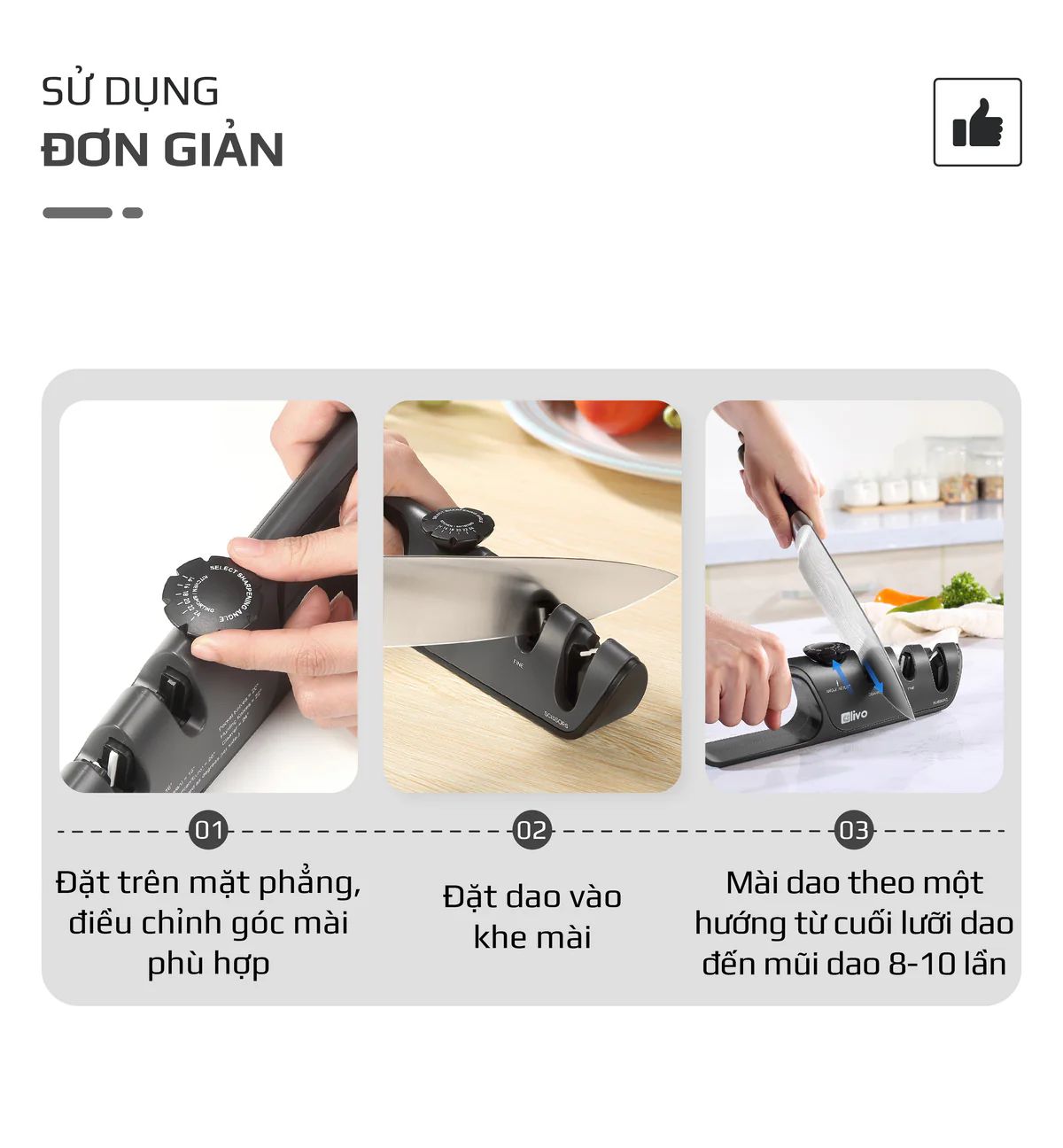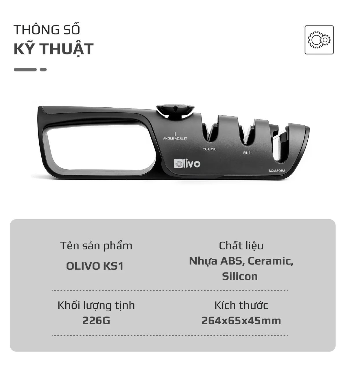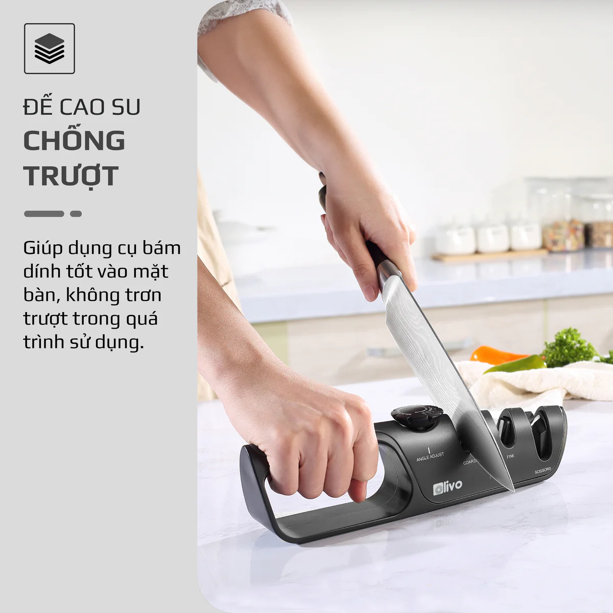 Dụng Cụ Mài Dao Kéo OLIVO KS1 - Làm Sắc Nhanh - 3 Khe Mài Riêng Biệt - Núm Xoay Điều Chỉnh Góc Mài - Dễ Sử Dụng