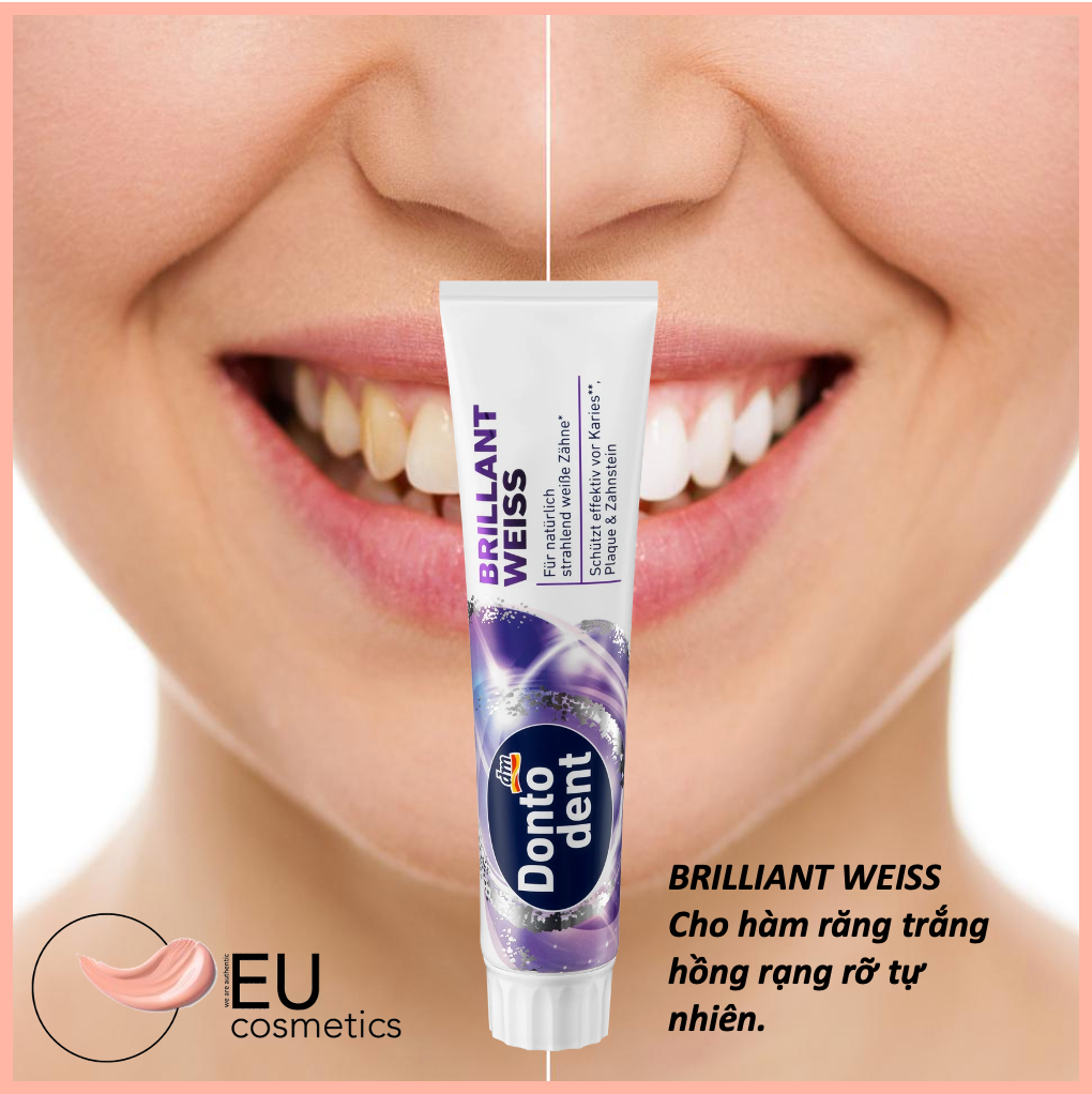Brilliant Weiss (tím): Có tác dụng loại bỏ vết bẩn và mảng bám, cung cấp độ trắng tự nhiên của răng, bảo vệ chống sâu răng, mảng bám và cao răng, đặc biệt hữu hiệu ngay cả với mảng bám từ nicotine, cà phê hoặc trà.