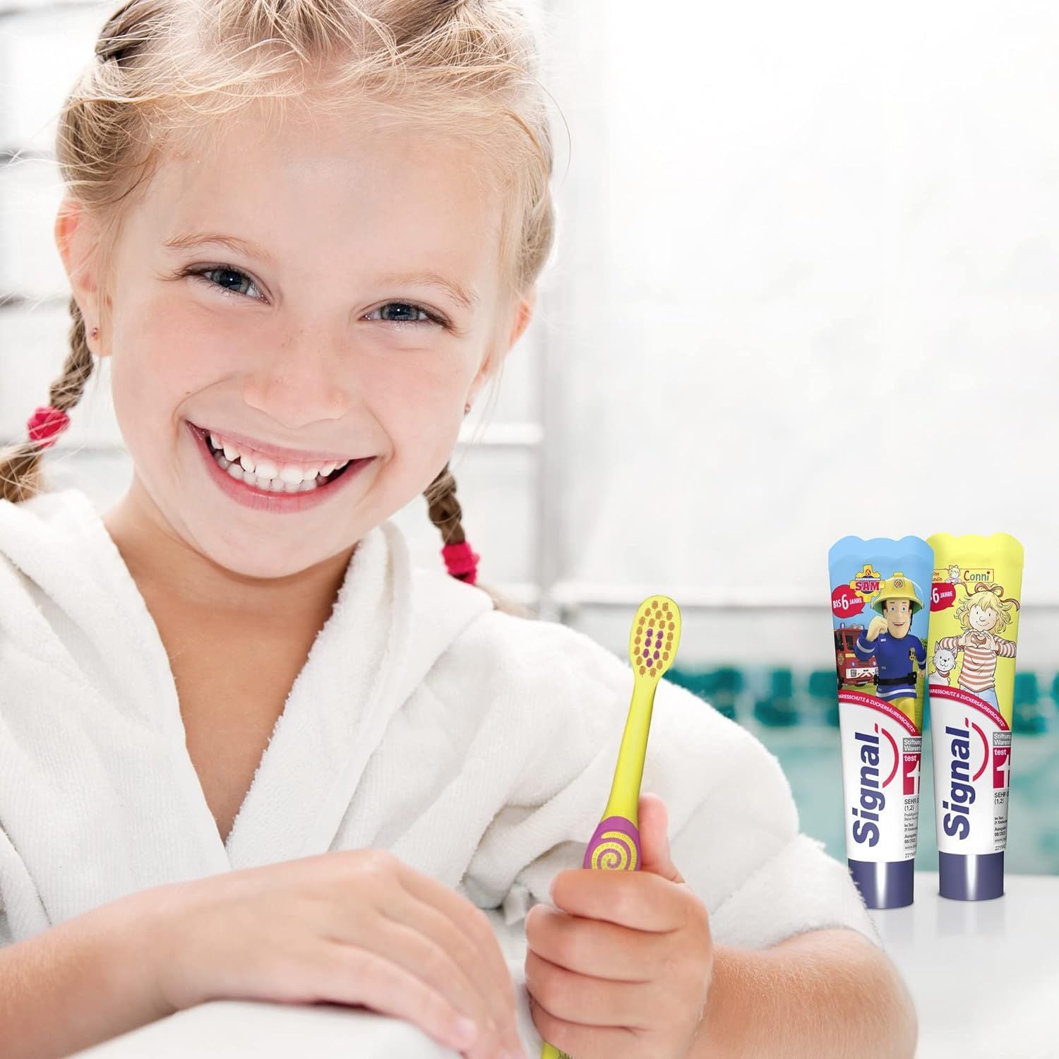 Kem đánh răng Signal của Đức là thương hiệu bán chạy tại nhiều quốc gia trên thế giới. Đây là loại kem đánh răng trẻ em “được lòng” cả các bà mẹ cũng như các bé bởi thiết kế vô cùng đáng yêu.