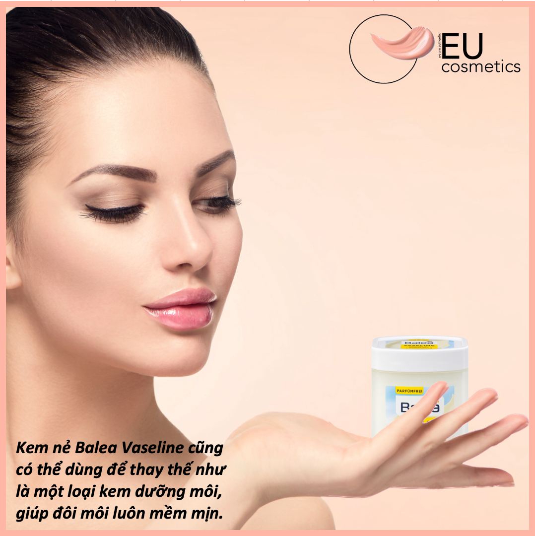 Kem nẻ Balea Vaseline cũng có thể dùng để thay thế như là một loại kem dưỡng môi, giúp đôi môi luôn mềm mịn khiến chàng nhìn chỉ muốn cắn!!