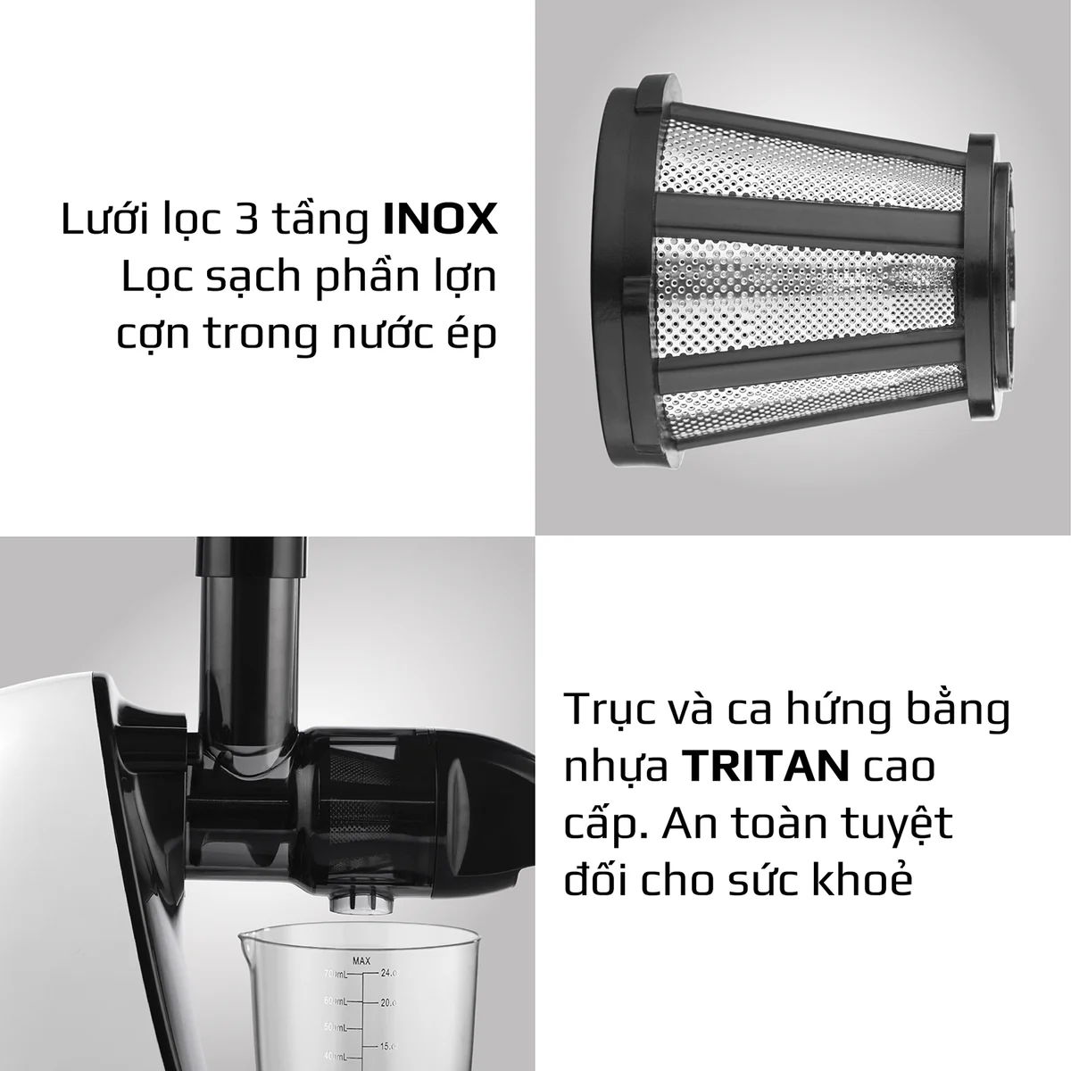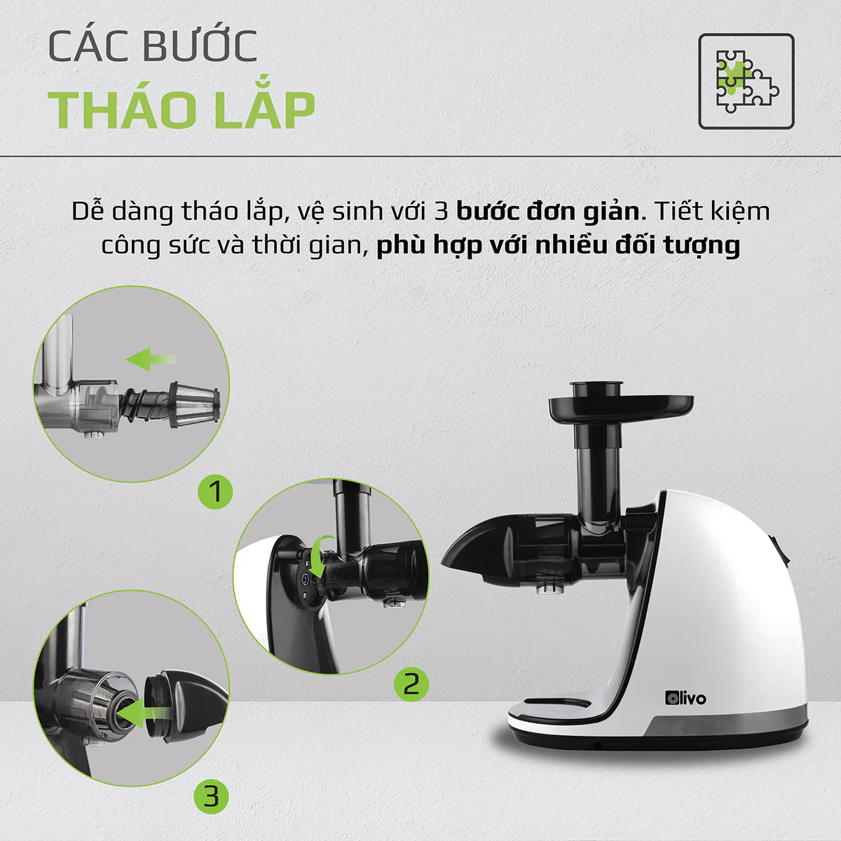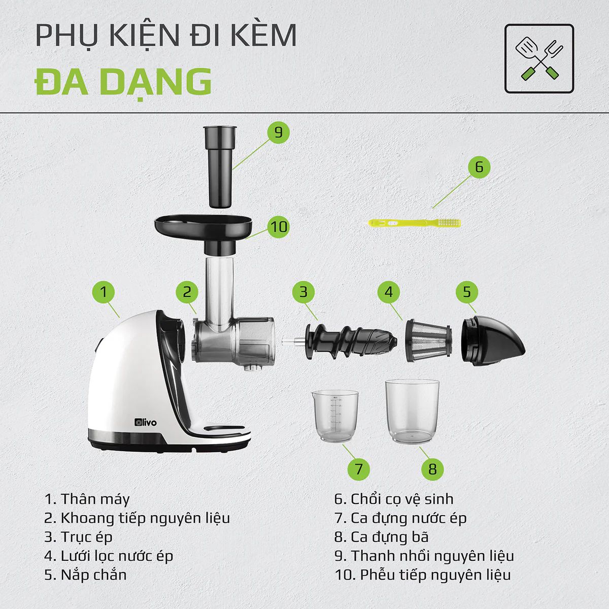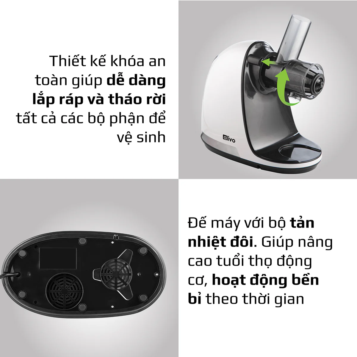 Máy Ép Chậm Trục Ngang OLIVO SJ22 - Ép Rau Không Lo Kẹt Máy - Ép Kiệt Bã - Dễ Vệ Sinh