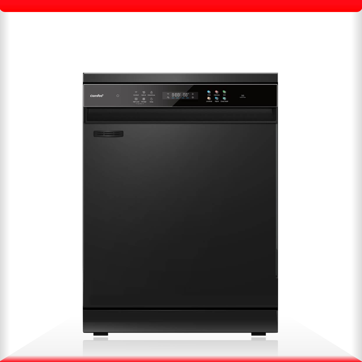 Máy rửa chén độc lập Comfee CDWEF1401HB-W-VN thiết kế bảng điều khiển cảm ứng thông minh, tích hợp màn hình hiển thị sắc nét giúp việc vận hành máy trở nên thật dễ dàng. Các biểu tượng màu sắc trực quan giúp người dùng nhanh chóng lựa chọn chế độ rửa phù hợp, mang đến trải nghiệm hiện đại và tiện nghi.