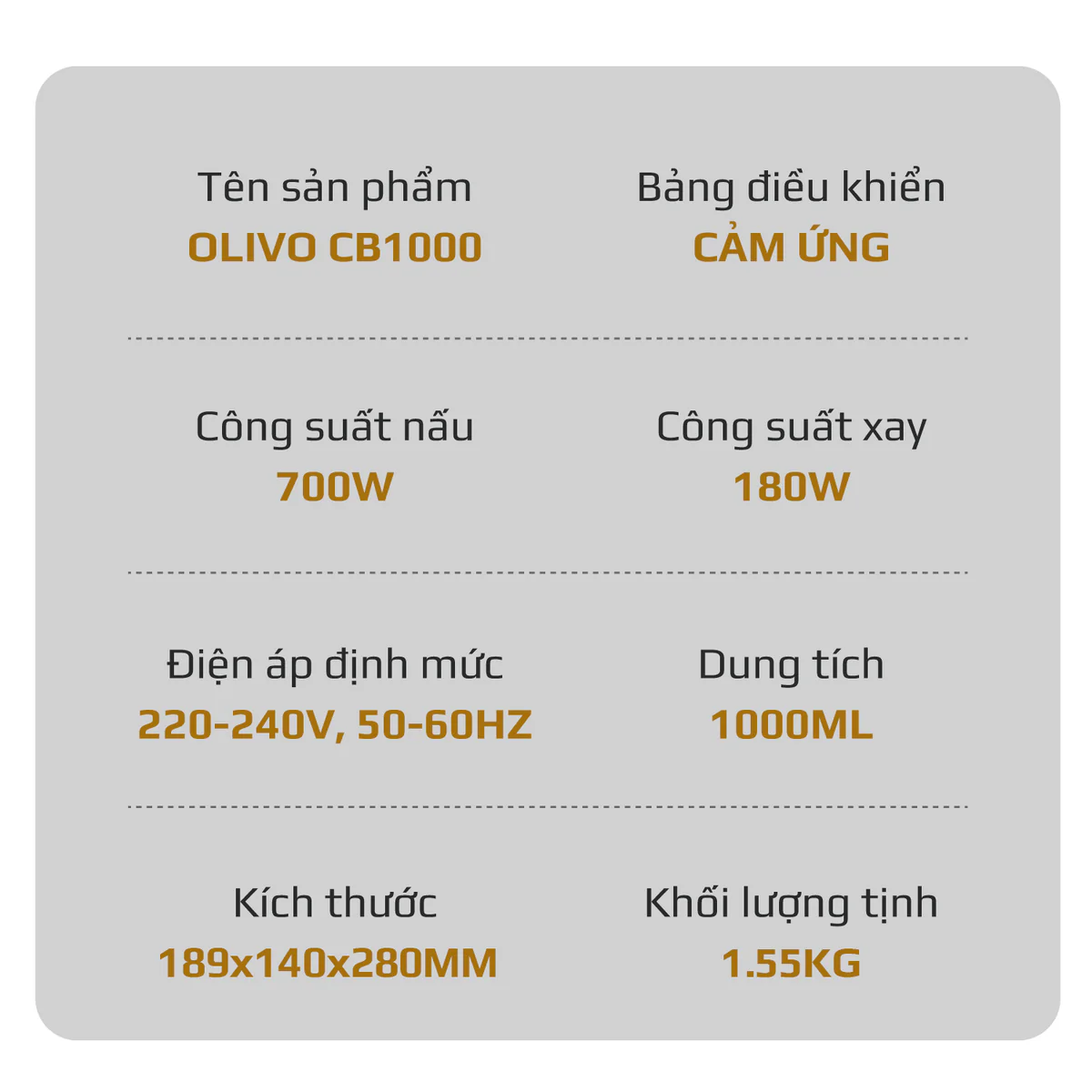 Máy Xay Nấu Đa Năng OLIVO CB1000 - Dung Tích 1L, Nắp INOX Kết Hợp Kính Cường Lực Duy Nhất Trên Thị Trường, Công Suất 880W, 9 Chế Độ, Chống Trào Tuyệt Đối