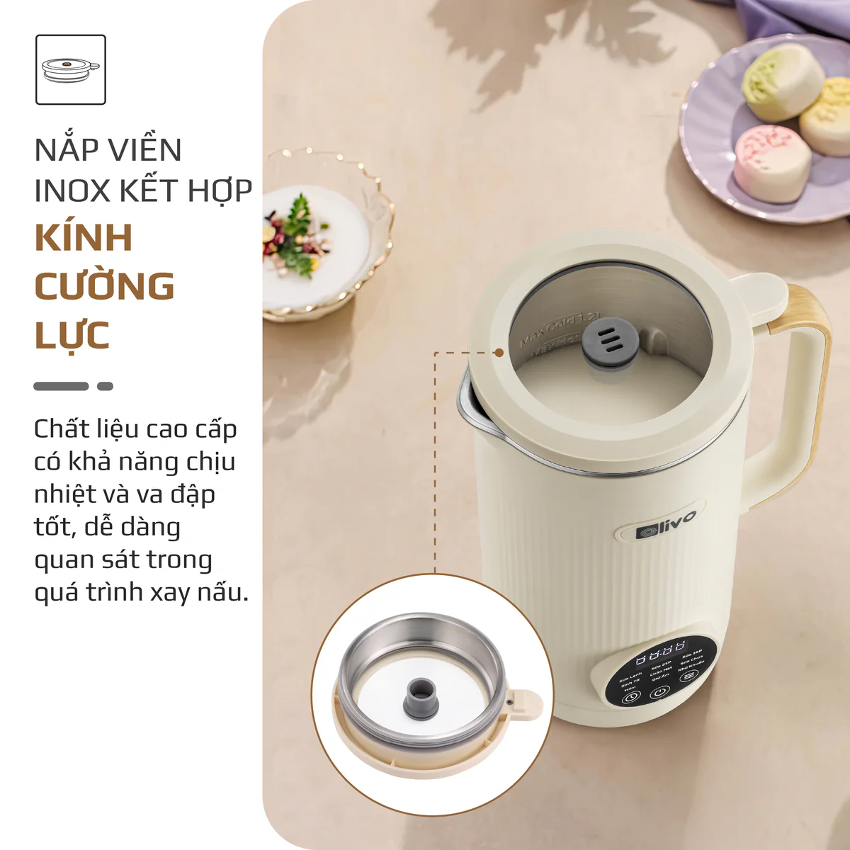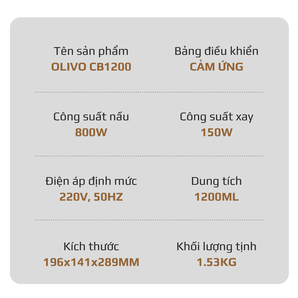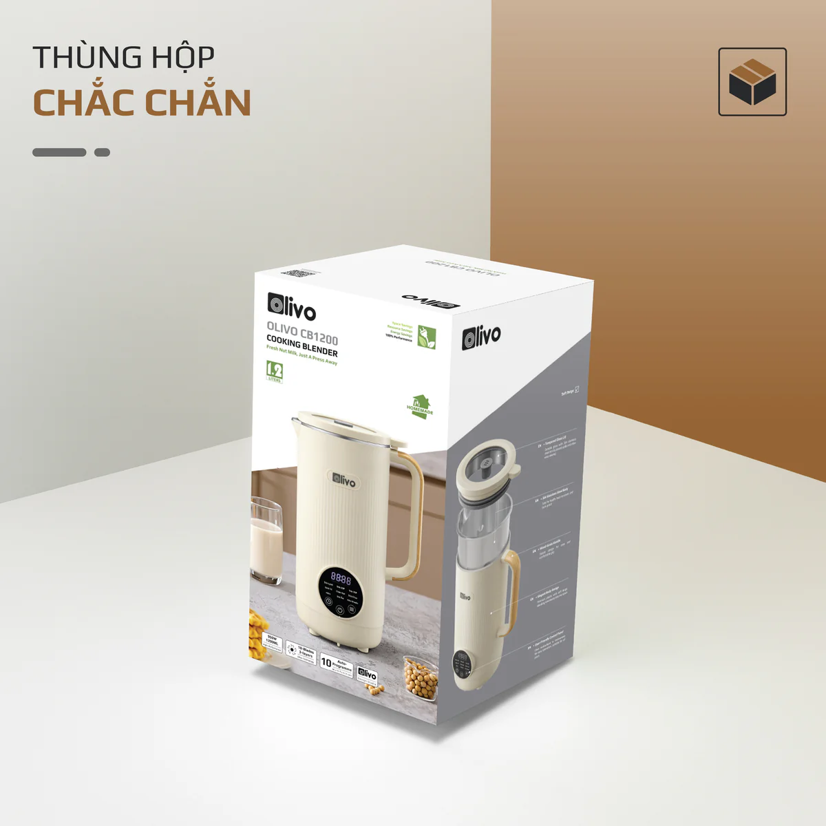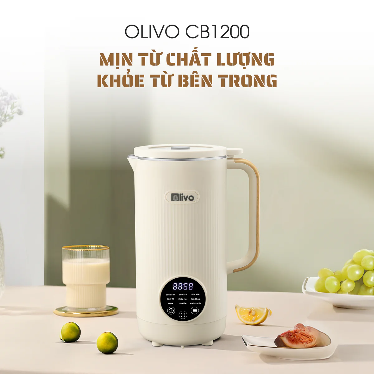 Máy Xay Nấu Đa Năng OLIVO CB1200 - Dung Tích 1.2L - Nắp INOX 304 Kết Hợp Kính Cường Lực - 10 Chế Độ, Khử Khuẩn, Chống Trào Tuyệt Đối