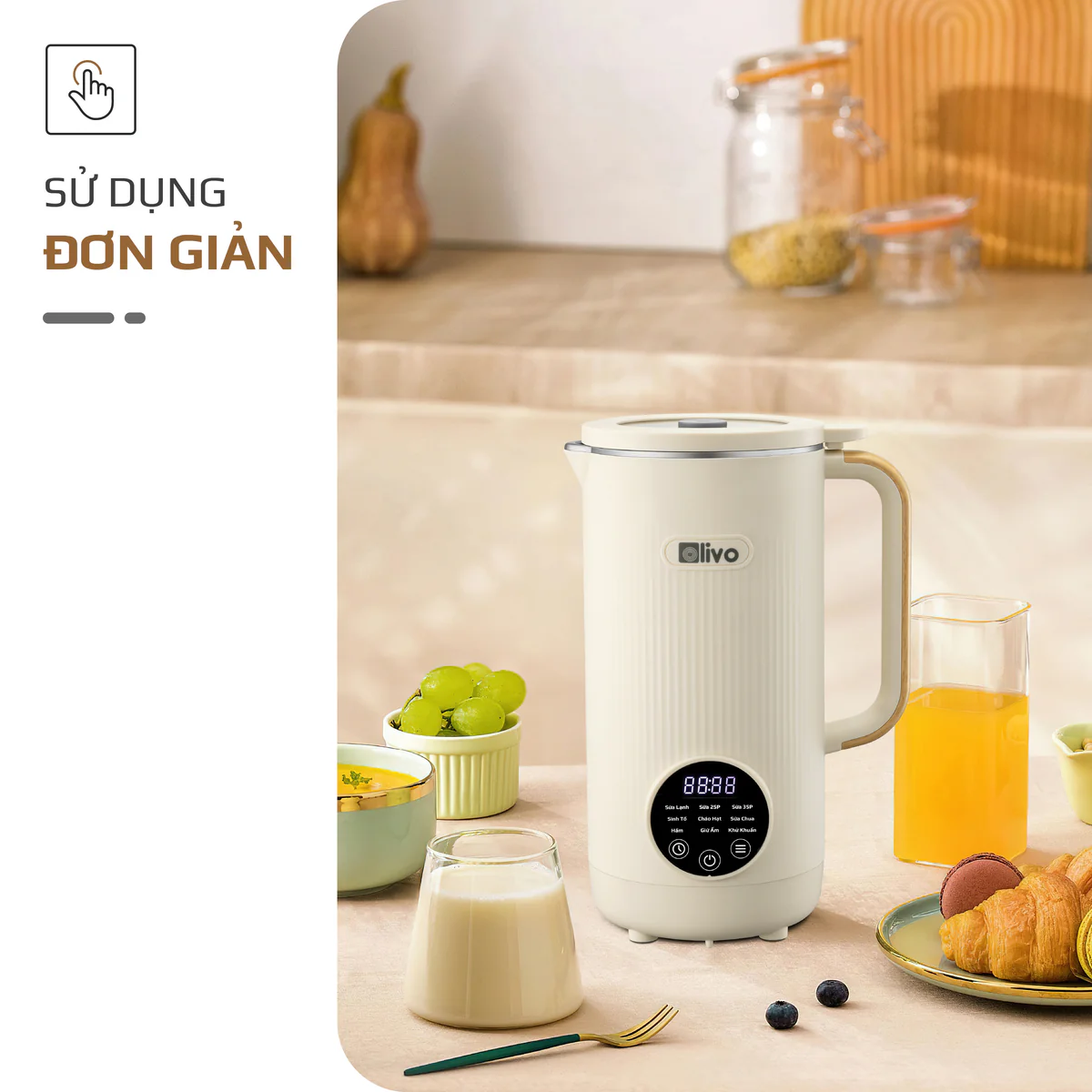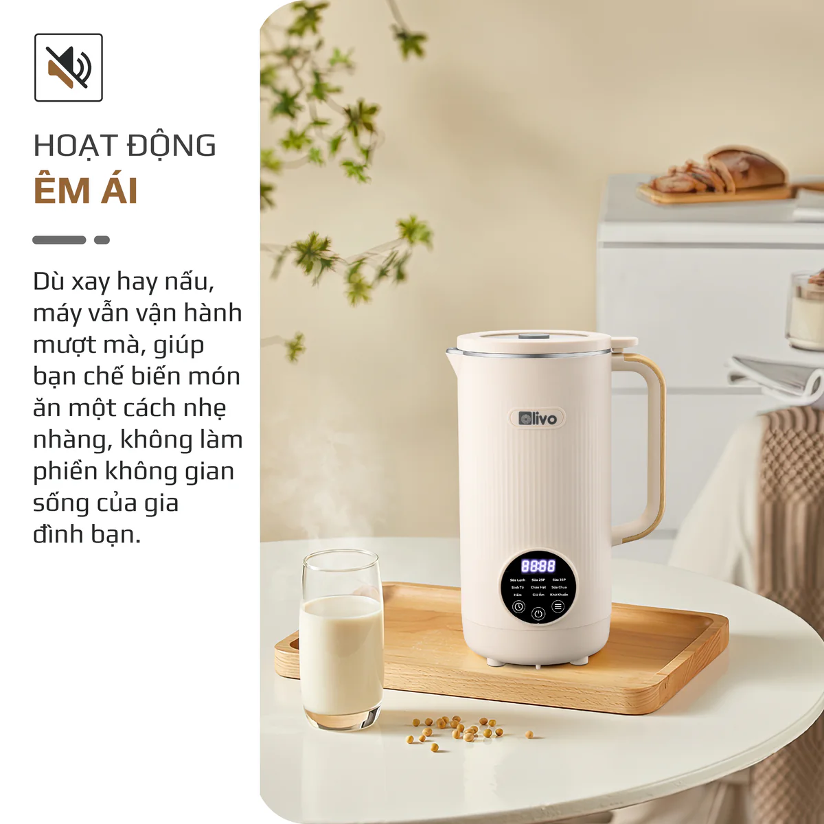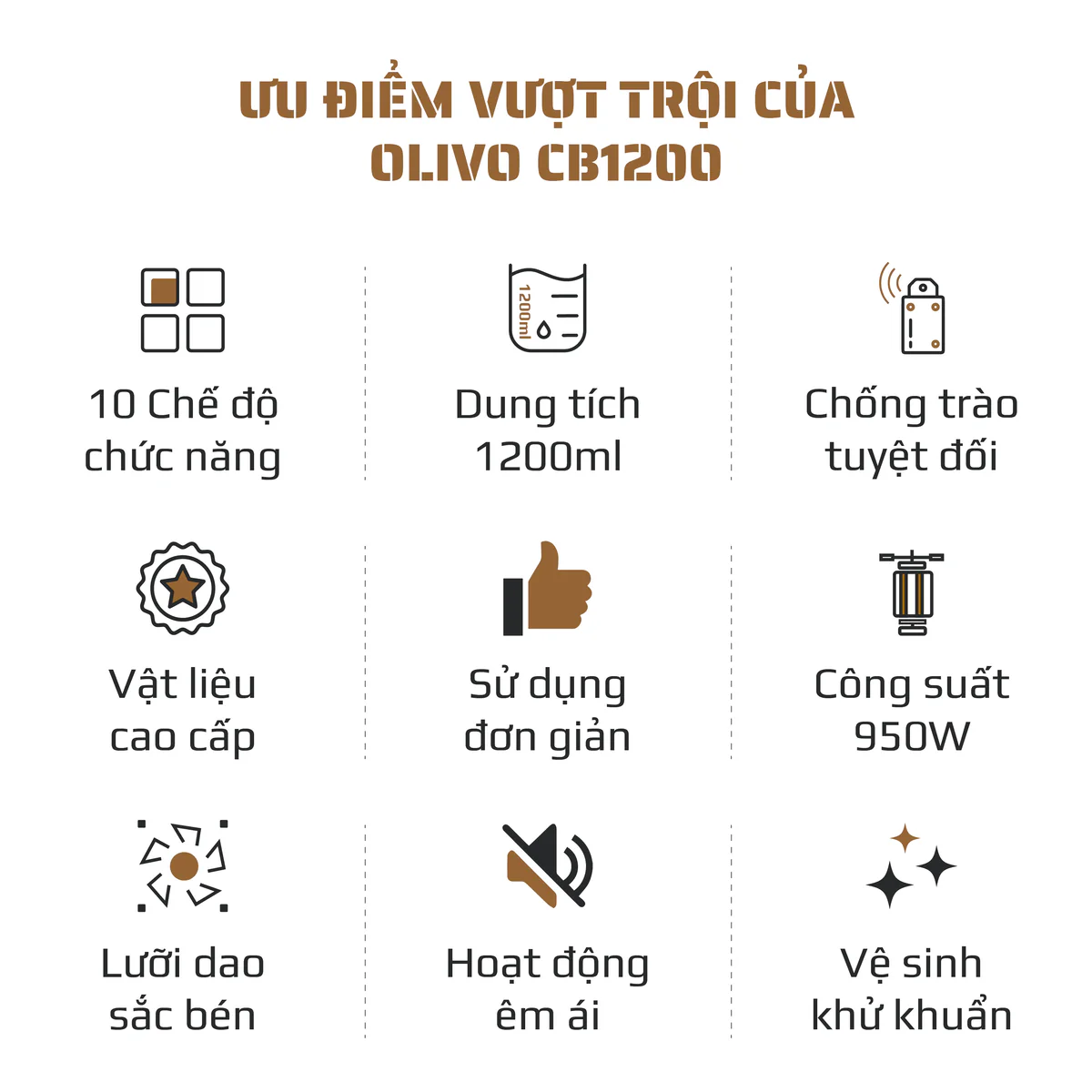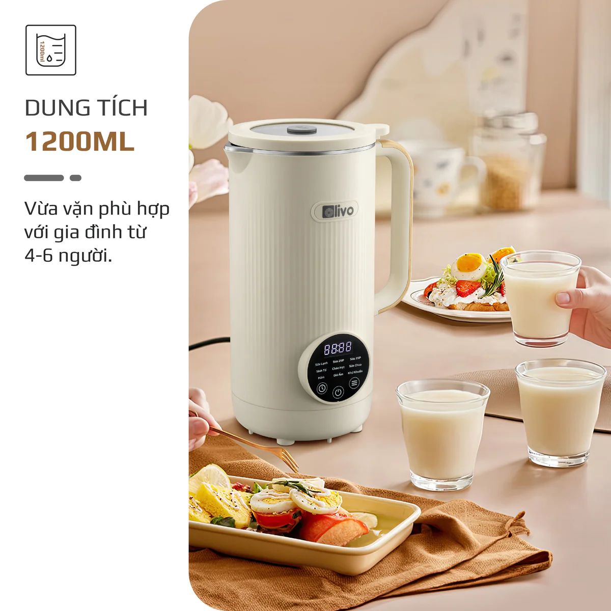 Máy Xay Nấu Đa Năng OLIVO CB1200 - Dung Tích 1.2L - Nắp INOX 304 Kết Hợp Kính Cường Lực - 10 Chế Độ, Khử Khuẩn, Chống Trào Tuyệt Đối