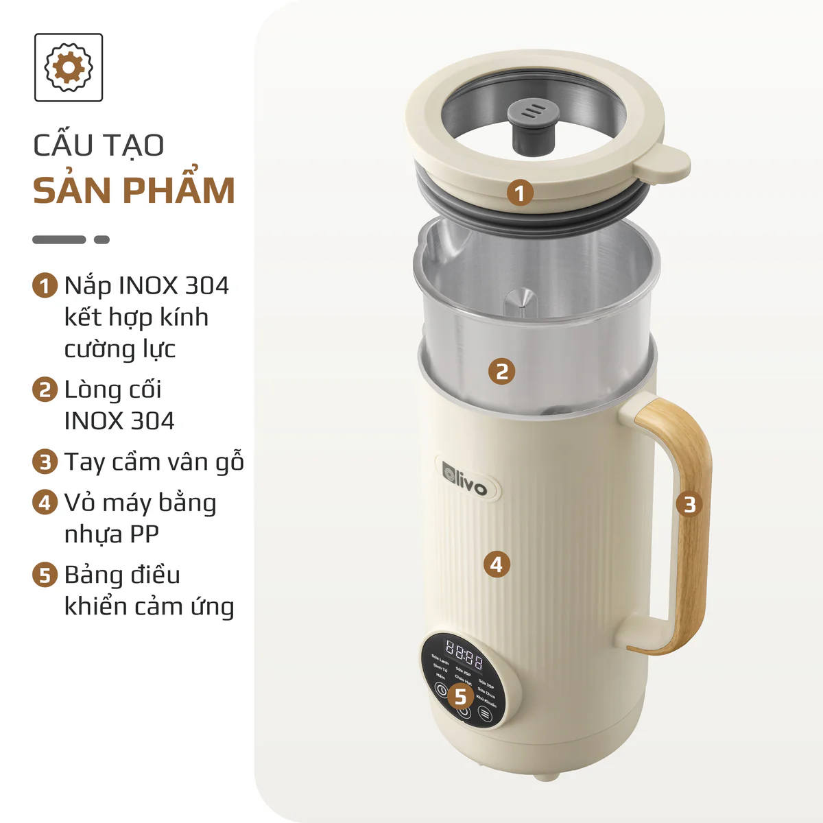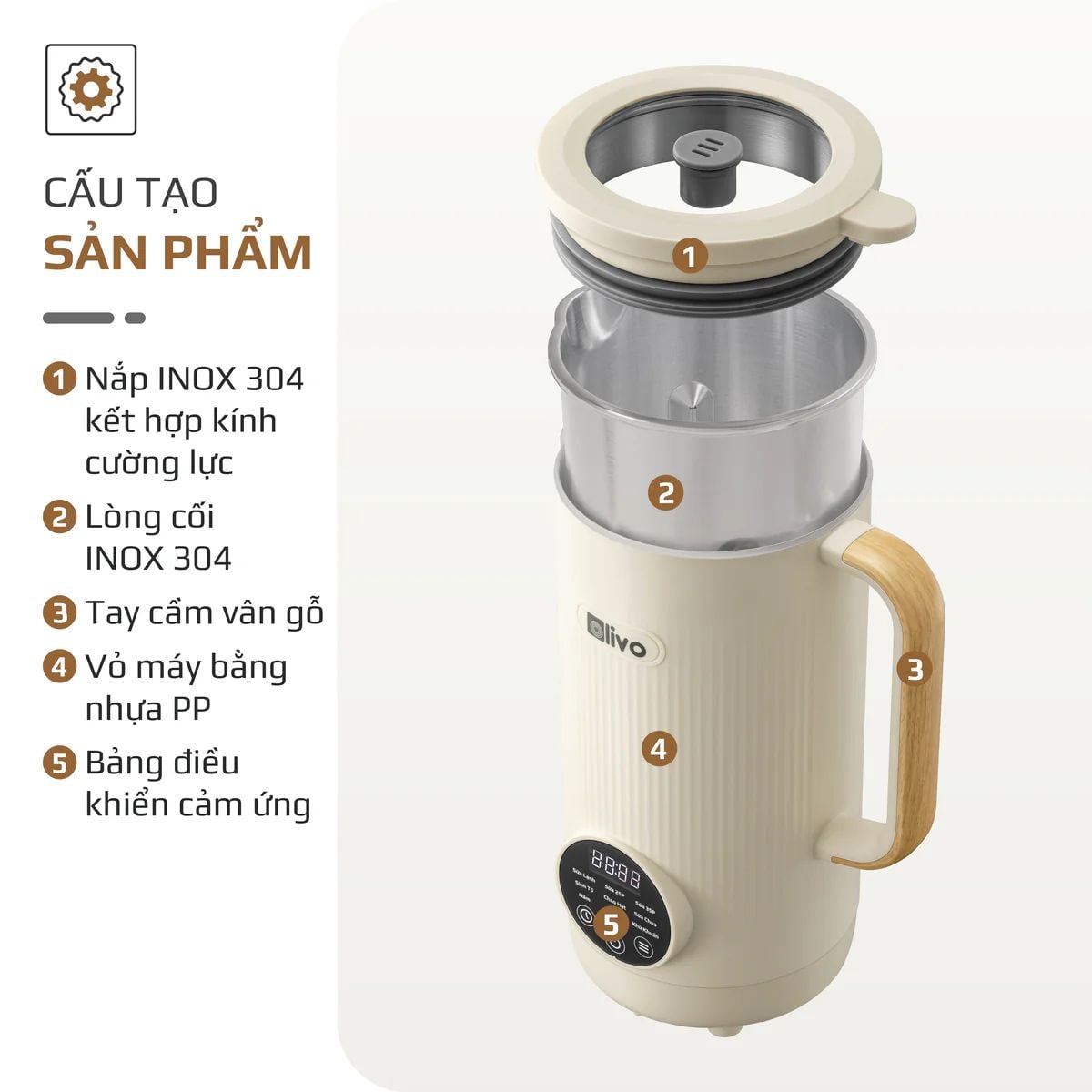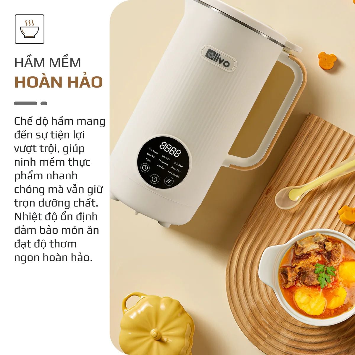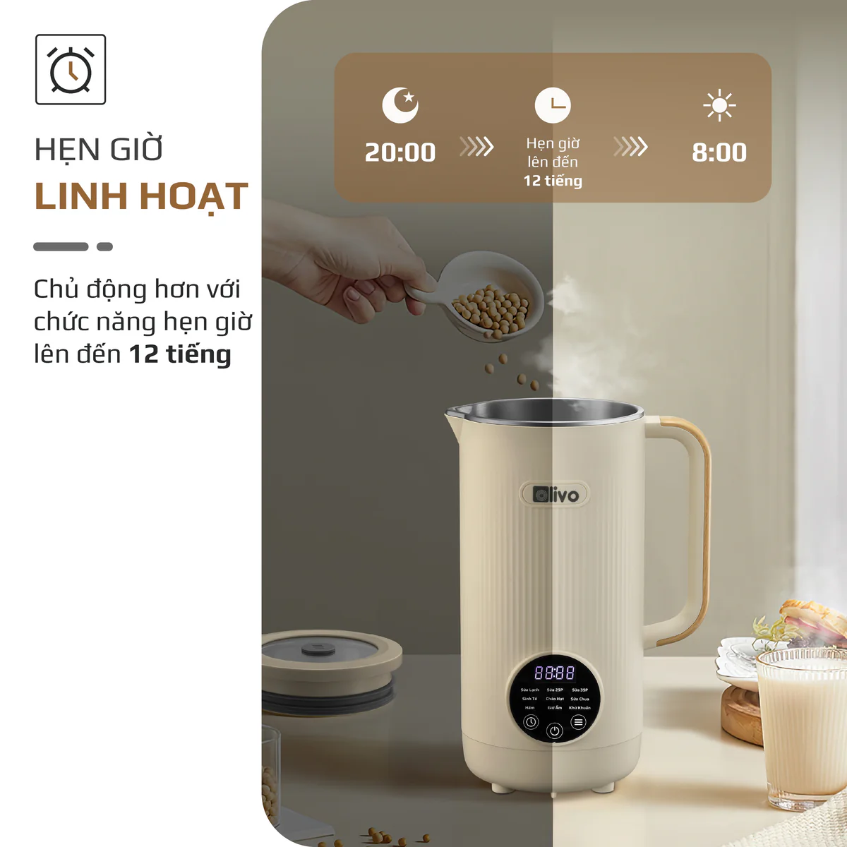 Máy Xay Nấu Đa Năng OLIVO CB1200 - Dung Tích 1.2L - Nắp INOX 304 Kết Hợp Kính Cường Lực - 10 Chế Độ, Khử Khuẩn, Chống Trào Tuyệt Đối