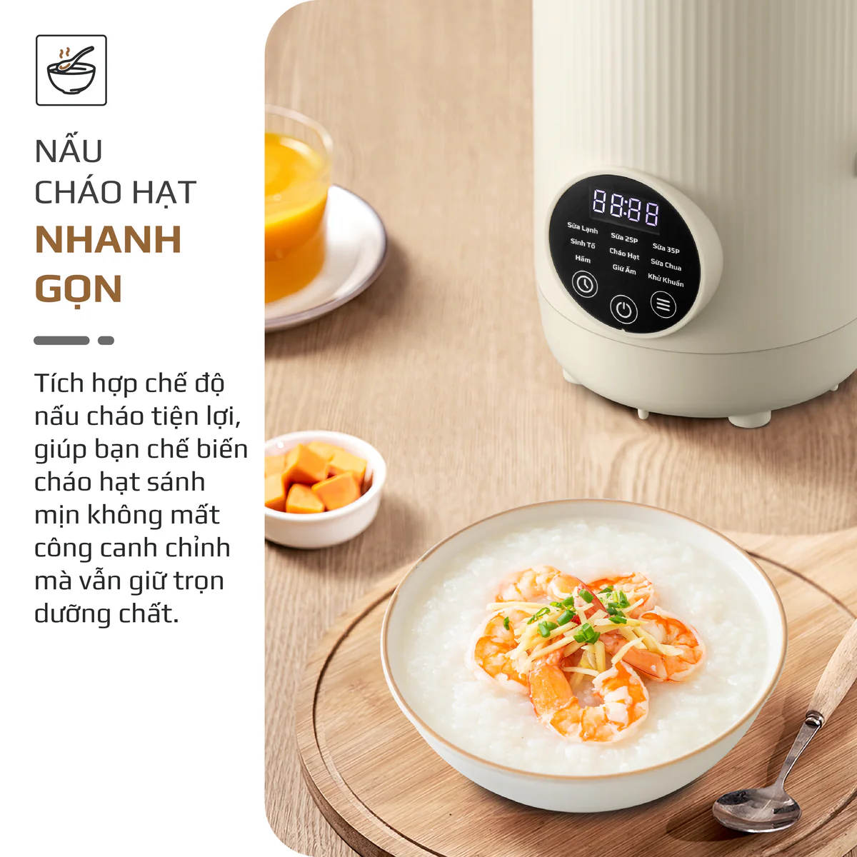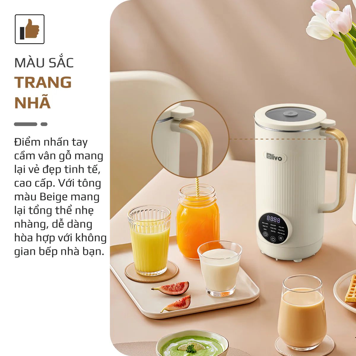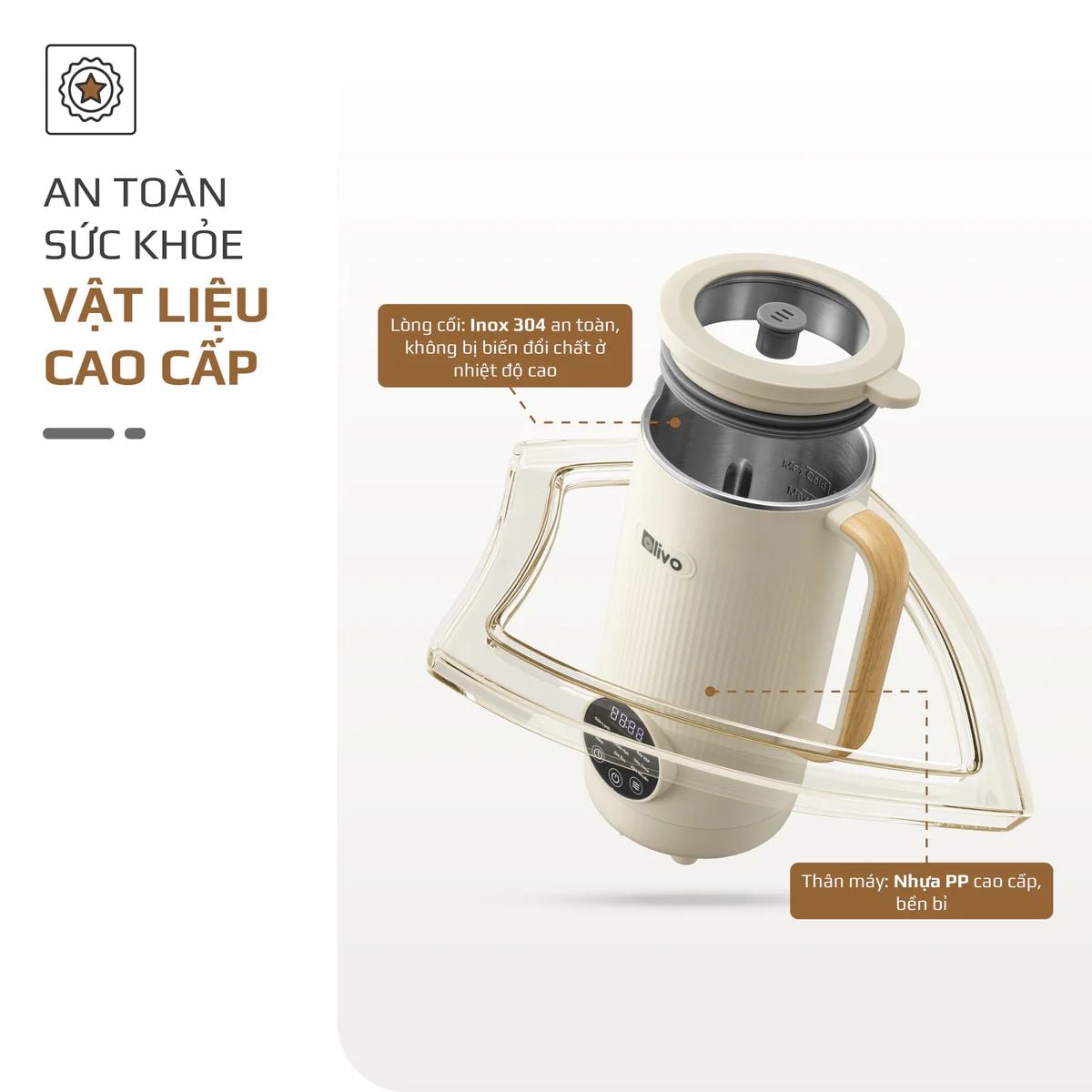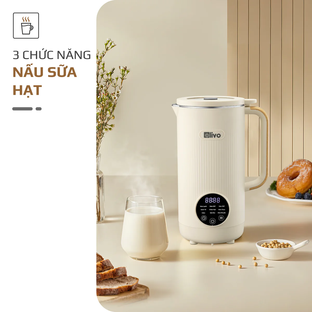 Máy Xay Nấu Đa Năng OLIVO CB1200 - Dung Tích 1.2L - Nắp INOX 304 Kết Hợp Kính Cường Lực - 10 Chế Độ, Khử Khuẩn, Chống Trào Tuyệt Đối