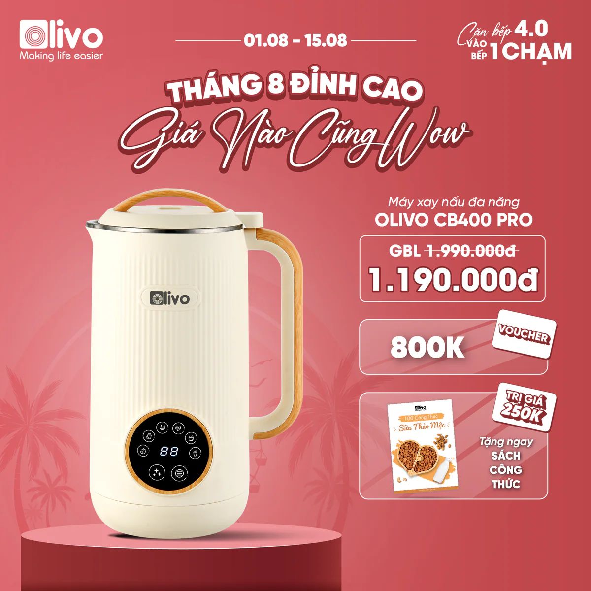 Máy Xay Nấu Đa Năng OLIVO CB400 PRO – Nhỏ Gọn Tiện Mang Theo – Đa Chức Năng – Cao Cấp
