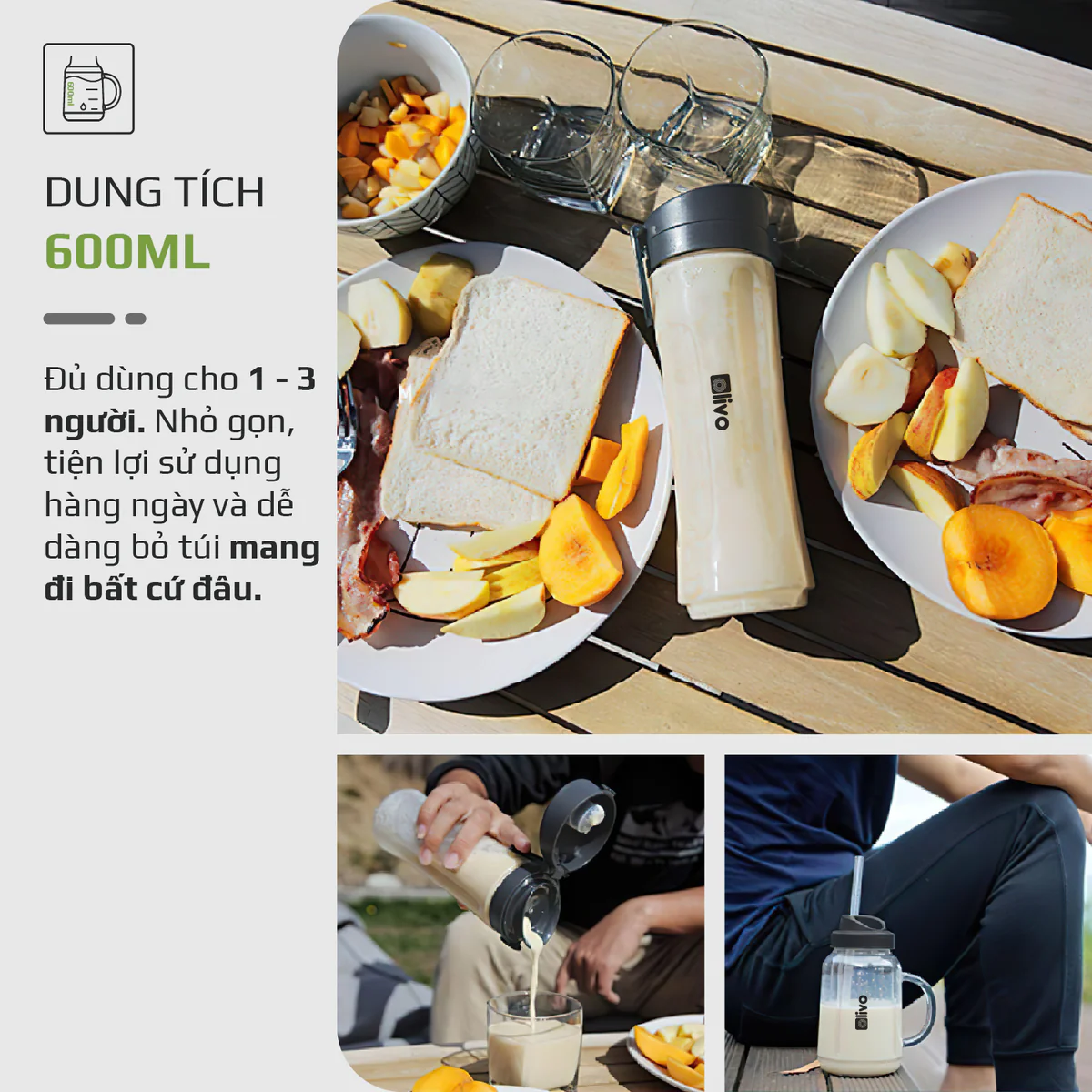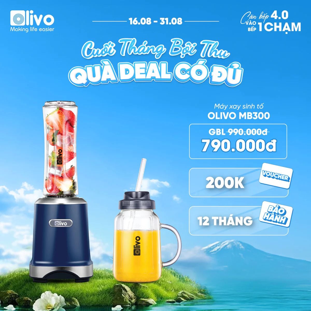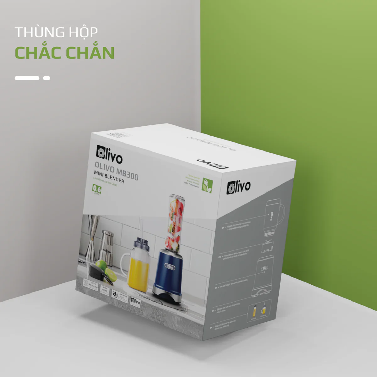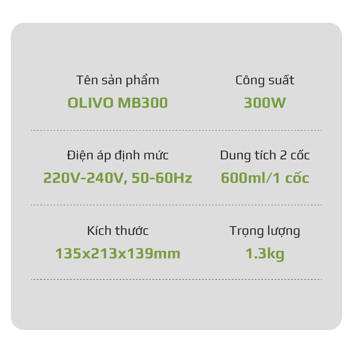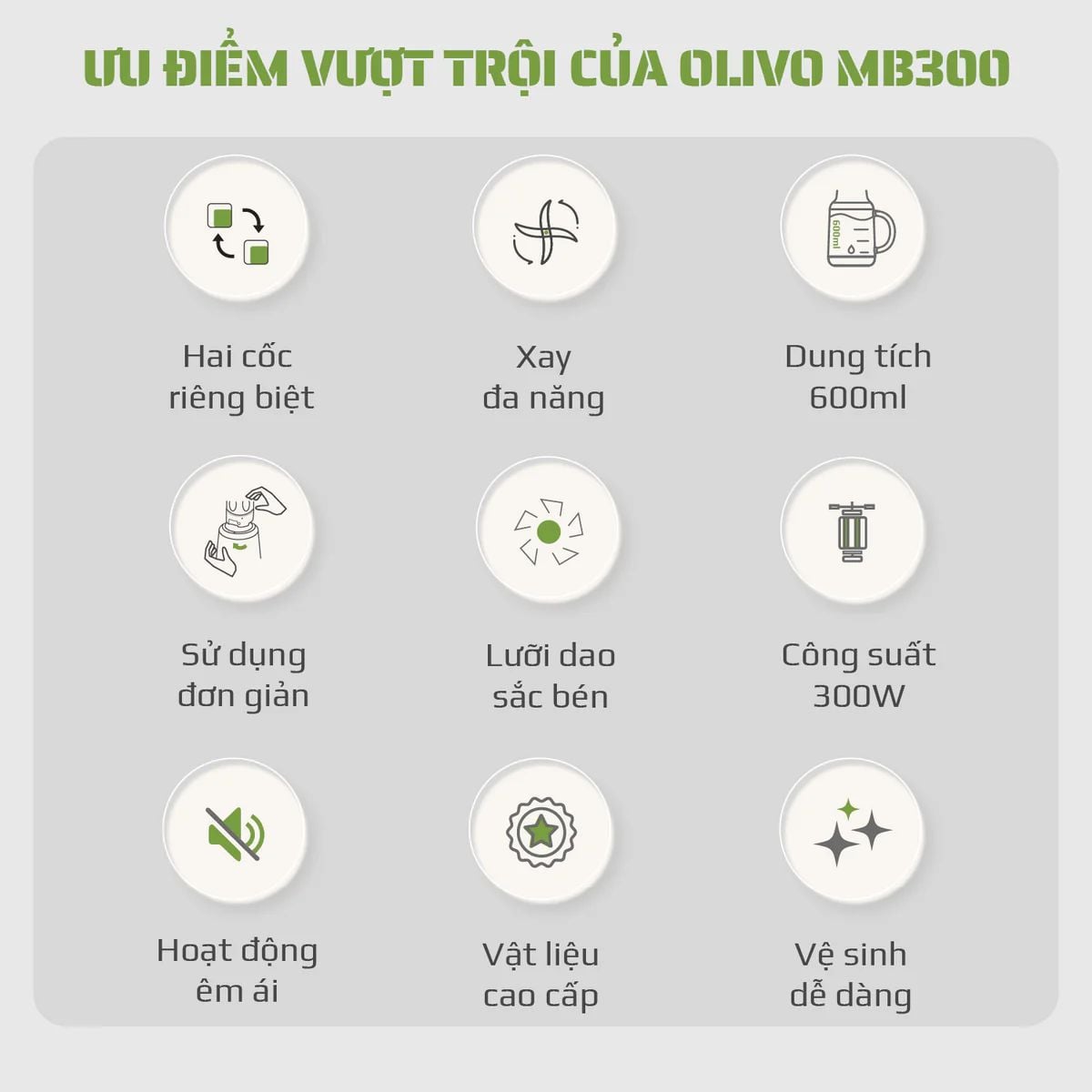 Máy Xay Sinh Tố OLIVO MB300 - 2 Cốc Linh Hoạt - Xay Đá Bào, Sinh Tố, Smoothie - Dung Tích 600ML