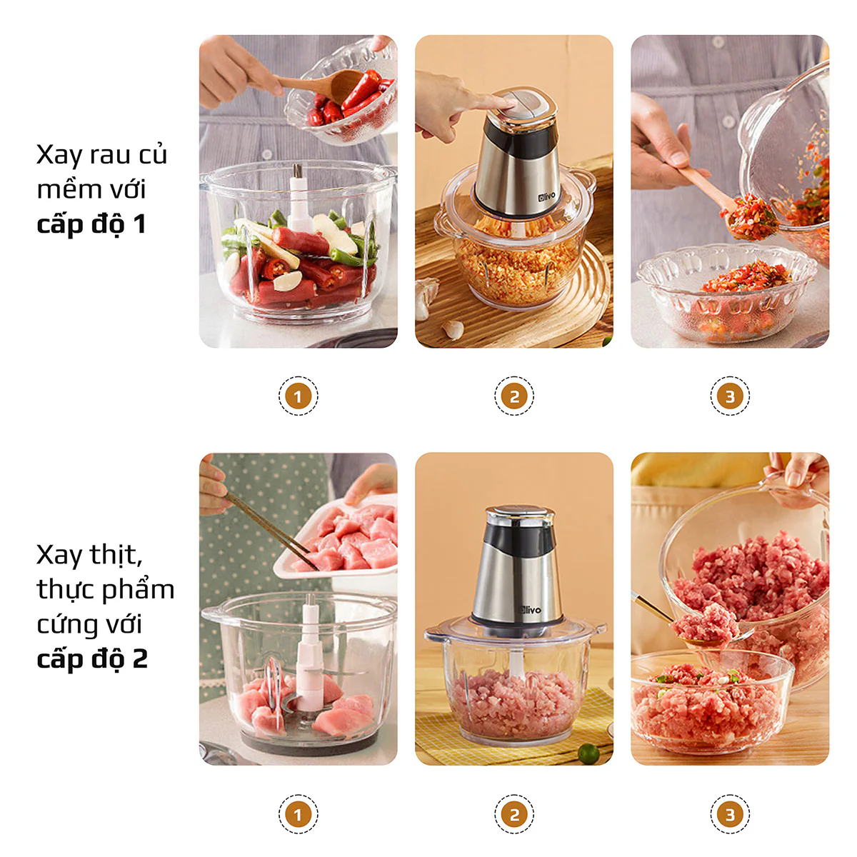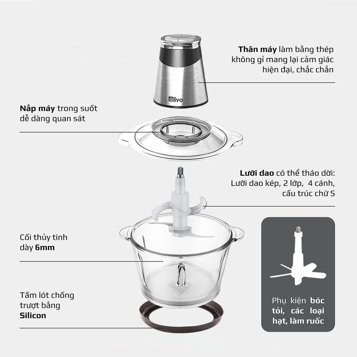 Máy Xay Thực Phẩm Đa Năng OLIVO FC21 - Dung Tích 2.1L - Công Suất 500W