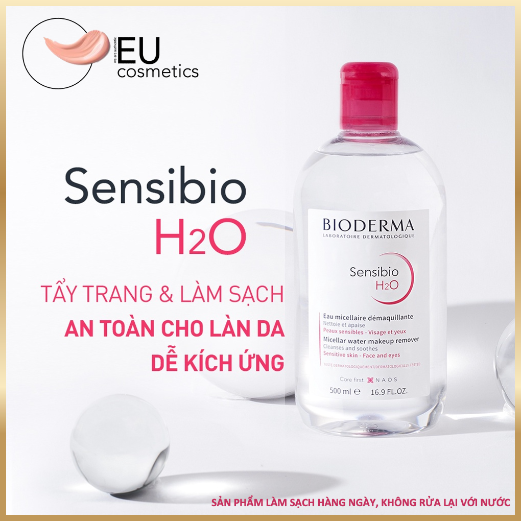 Nước tẩy trang cho da nhạy cảm Bioderma Sensibio H2O (nắp hồng)