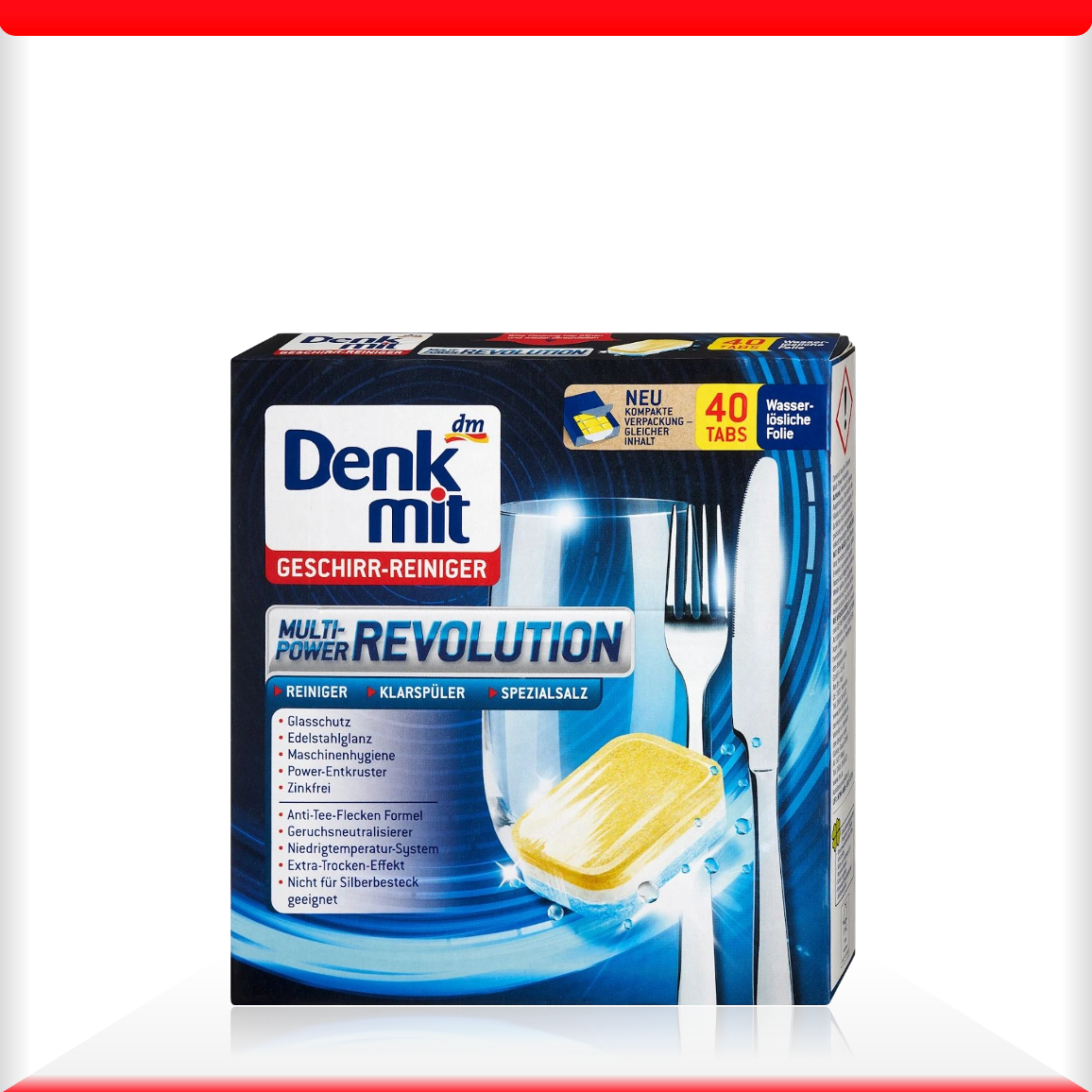 Là một trong những thương hiệu chất tẩy rửa nổi tiếng hàng đầu Châu Âu, không có lý do gì Denkmit lại bỏ qua thị trường các sản phẩm chuyên dùng cho Máy rửa bát. Với thế mạnh của mình, Denkmit chắc chắn sẽ không để các a/c phải thất vọng khi cho ra đời các sản phẩm chuyên dùng cho máy rửa bát của mình. Một trong những sản phẩm được nhiều người biết đến và tìm mua tại Việt Nam đó là viên rửa bát 3in1 Denkmit Multipower Revolution