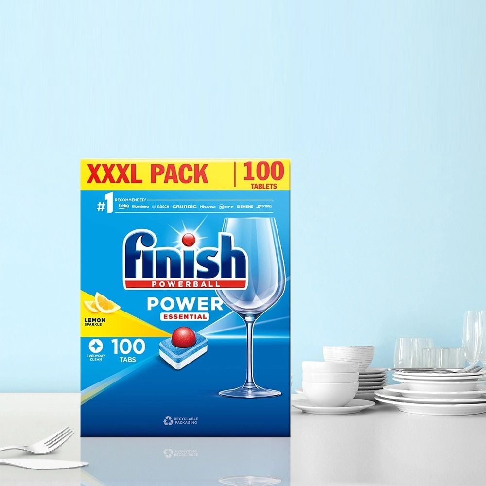 Viên rửa bát Finish Power Essential được đóng gói dạng viên nén với trọng lượng tiêu chuẩn 18.2g /viên. Mỗi viên được bọc 1 lớp nilon chống ẩm và đựng trong hộp carton giúp cho việc bảo quản được dễ dàng. Hàm lượng chứa trong viên rửa bát được tính toán phù hợp cho tất cả các dòng máy rửa bát cỡ lớn.