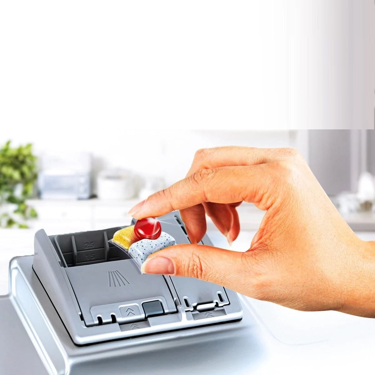 - Các thành phần đa chức năng của viên rửa được kích hoạt trong quá trình rửa ngay cả ở nhiệt độ thấp. Ngoài ra, Công thức bảo vệ bạc sẽ đảm bảo độ sáng bóng của dao kéo và các đồ kim loại.