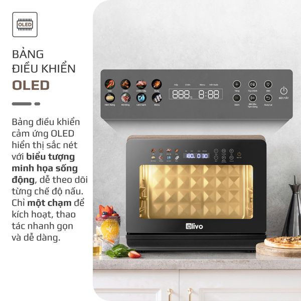 NỒI CHIÊN HẤP ĐA NĂNG OLIVO STEAMFRY XTRA - NÂNG CẤP BẢNG ĐIỀU KHIỂN OLED HIỆN ĐẠI