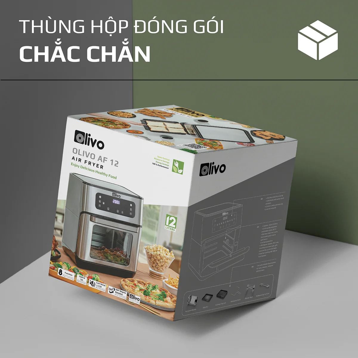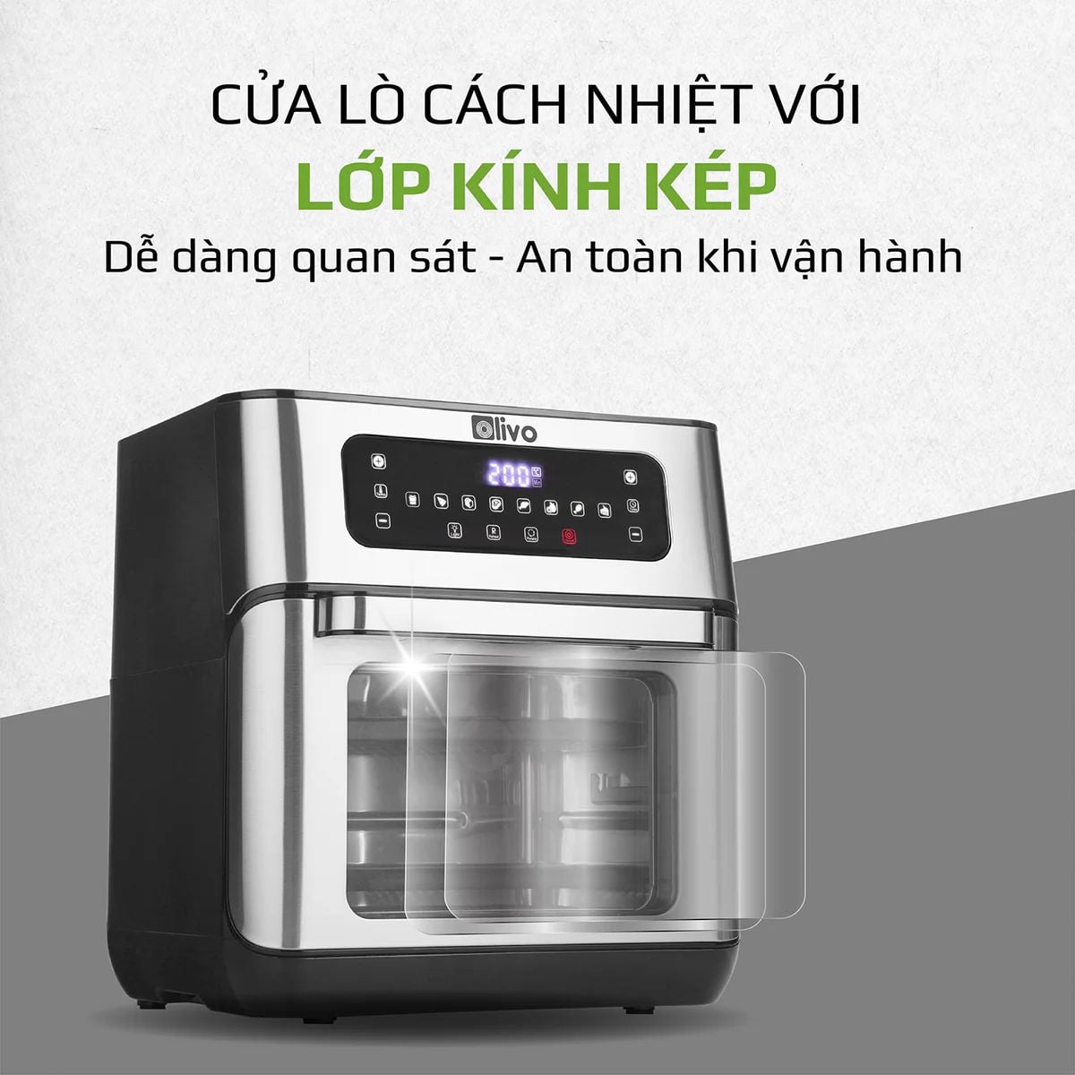 Nồi Chiên Không Dầu OLIVO AF12- Dung Tích 12L - Công Suất 1800W