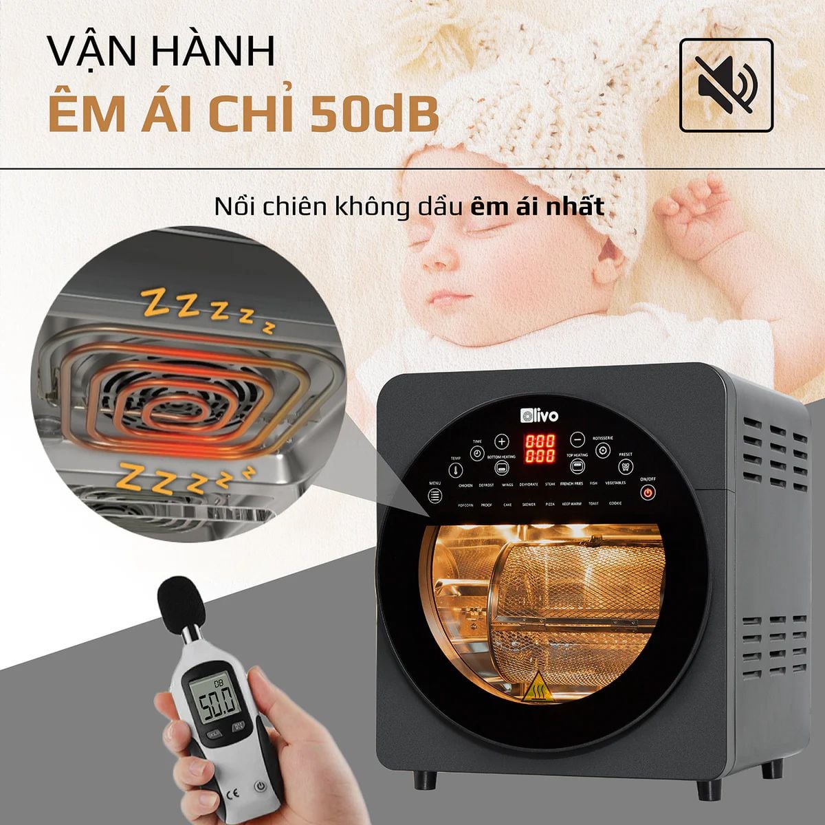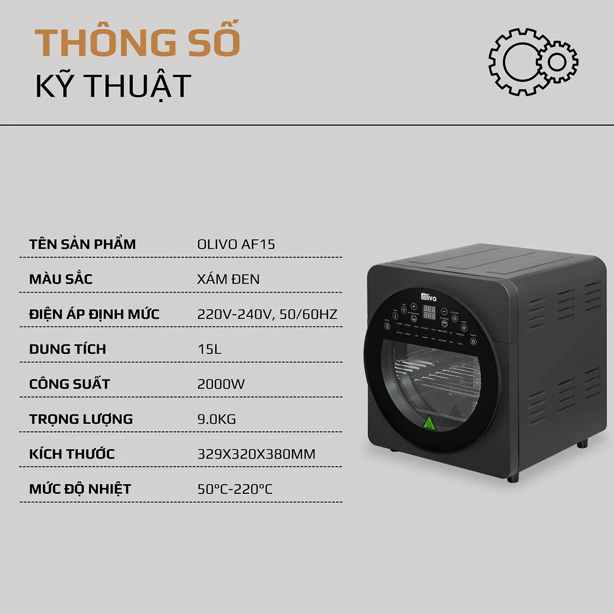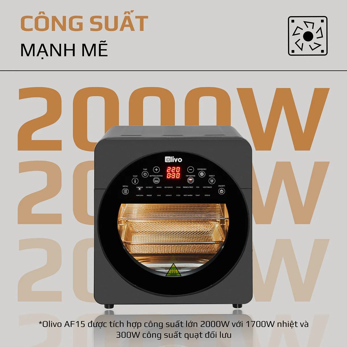 Nồi Chiên Không Dầu OLIVO AF15 - 16 Chức Năng - Dung Tích 15L - Công Suất 2000W