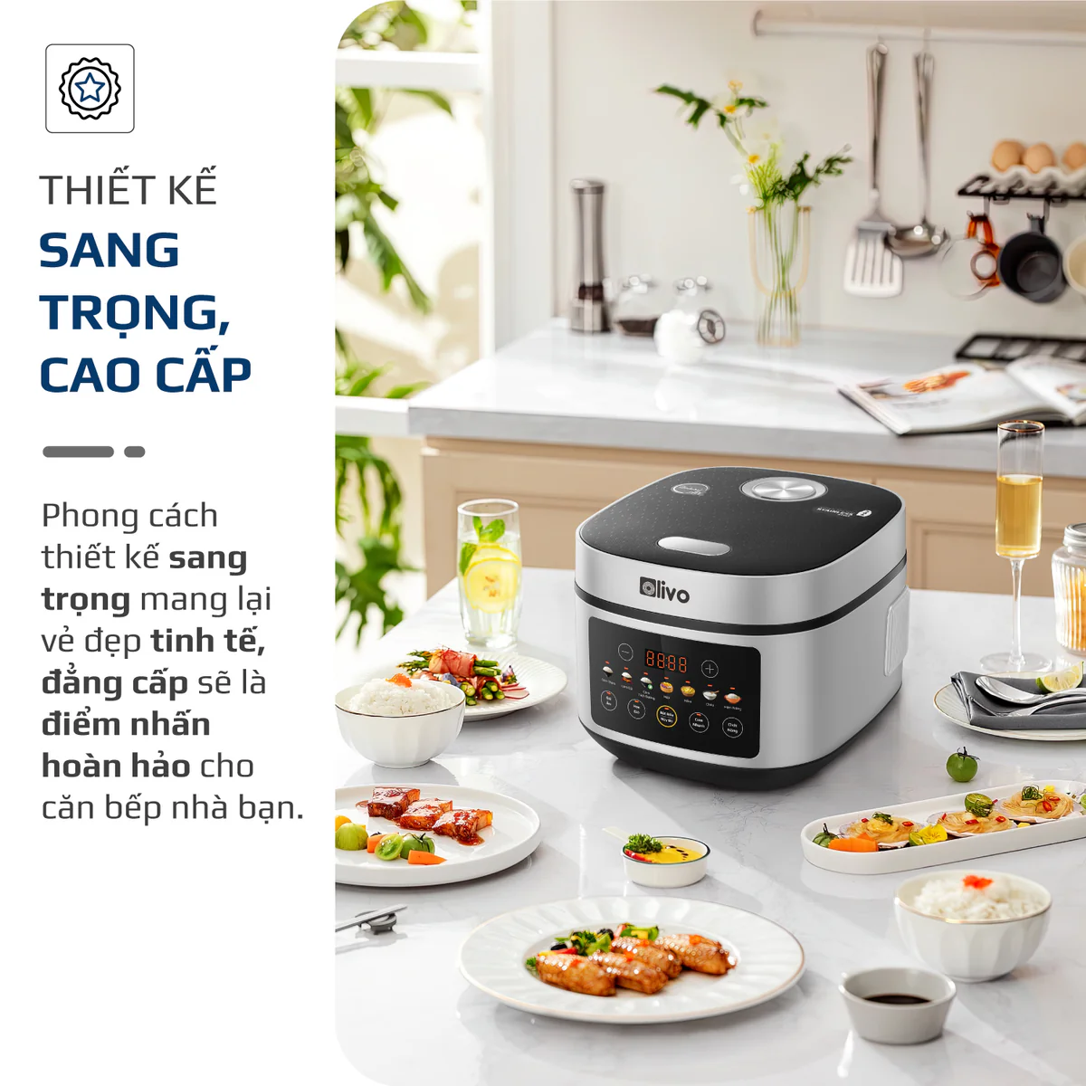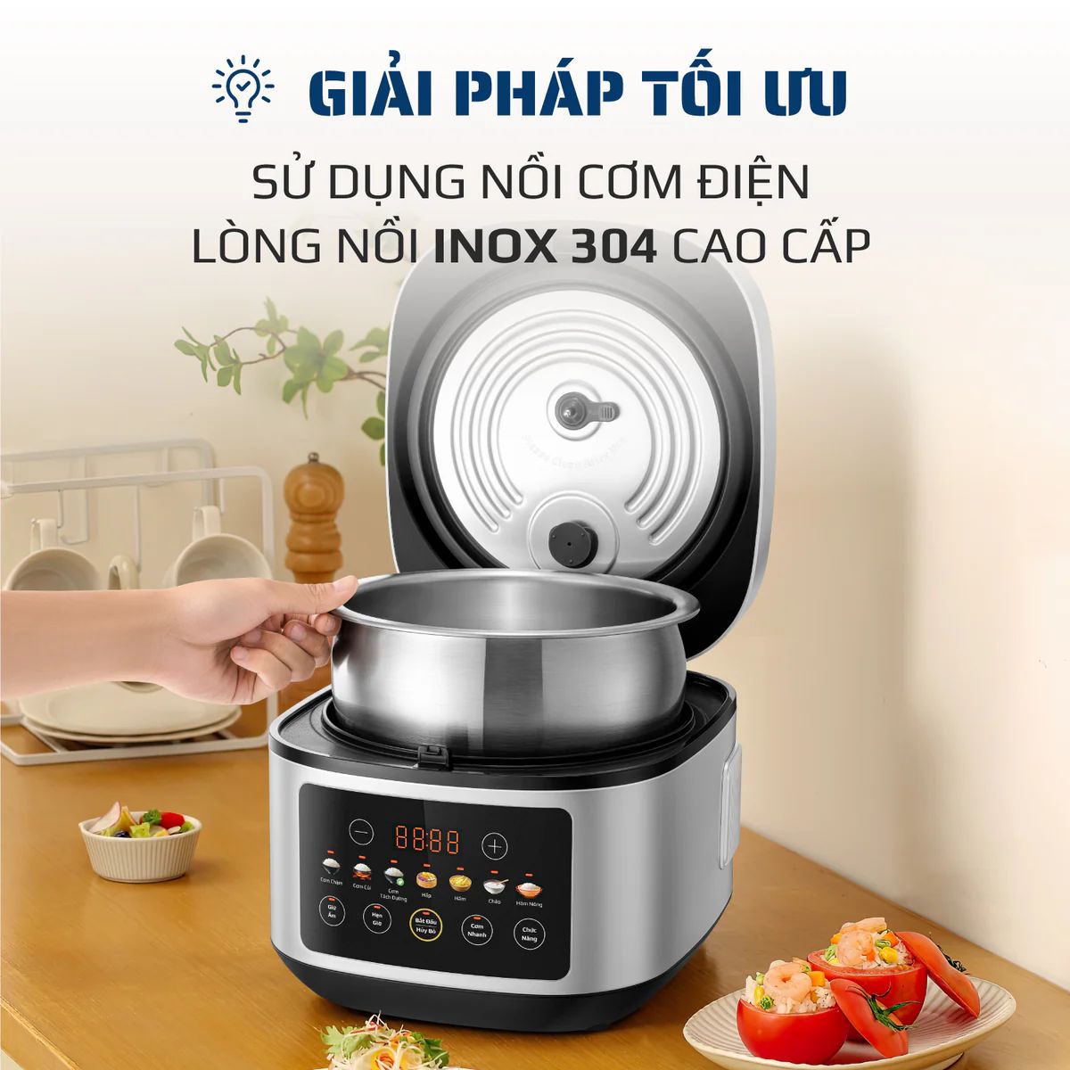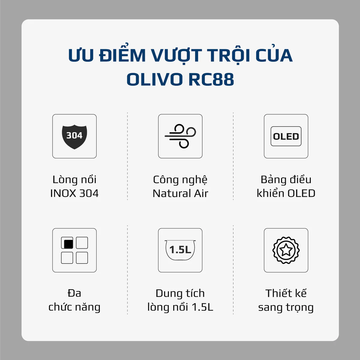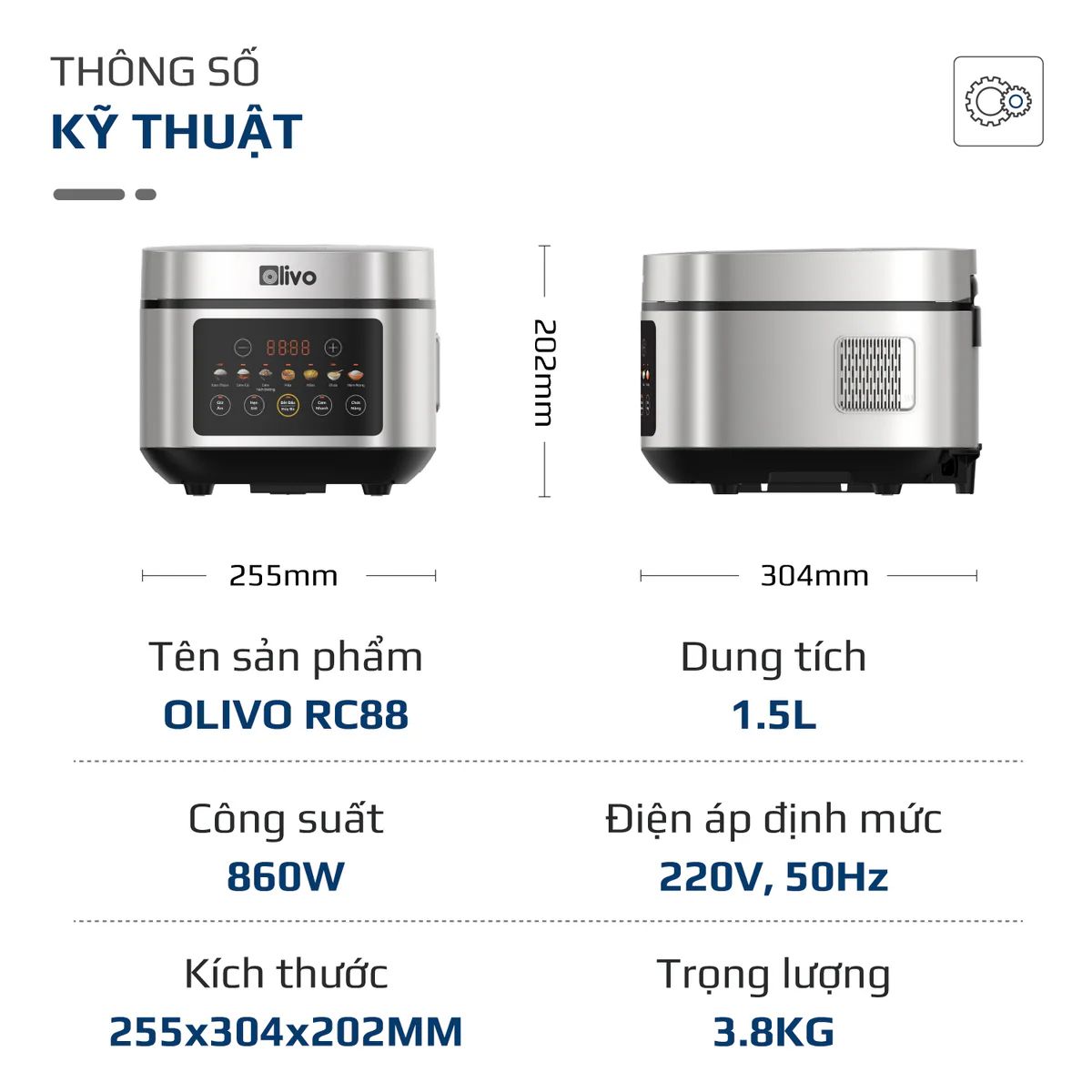 Nồi Cơm Điện OLIVO RC88 – Lòng Nồi INOX 304 Chống Dính Tự Nhiên, Bảng Điều Khiển OLED Sống Động, Nấu Cơm Ngon, Thiết Kế Sang Trọng