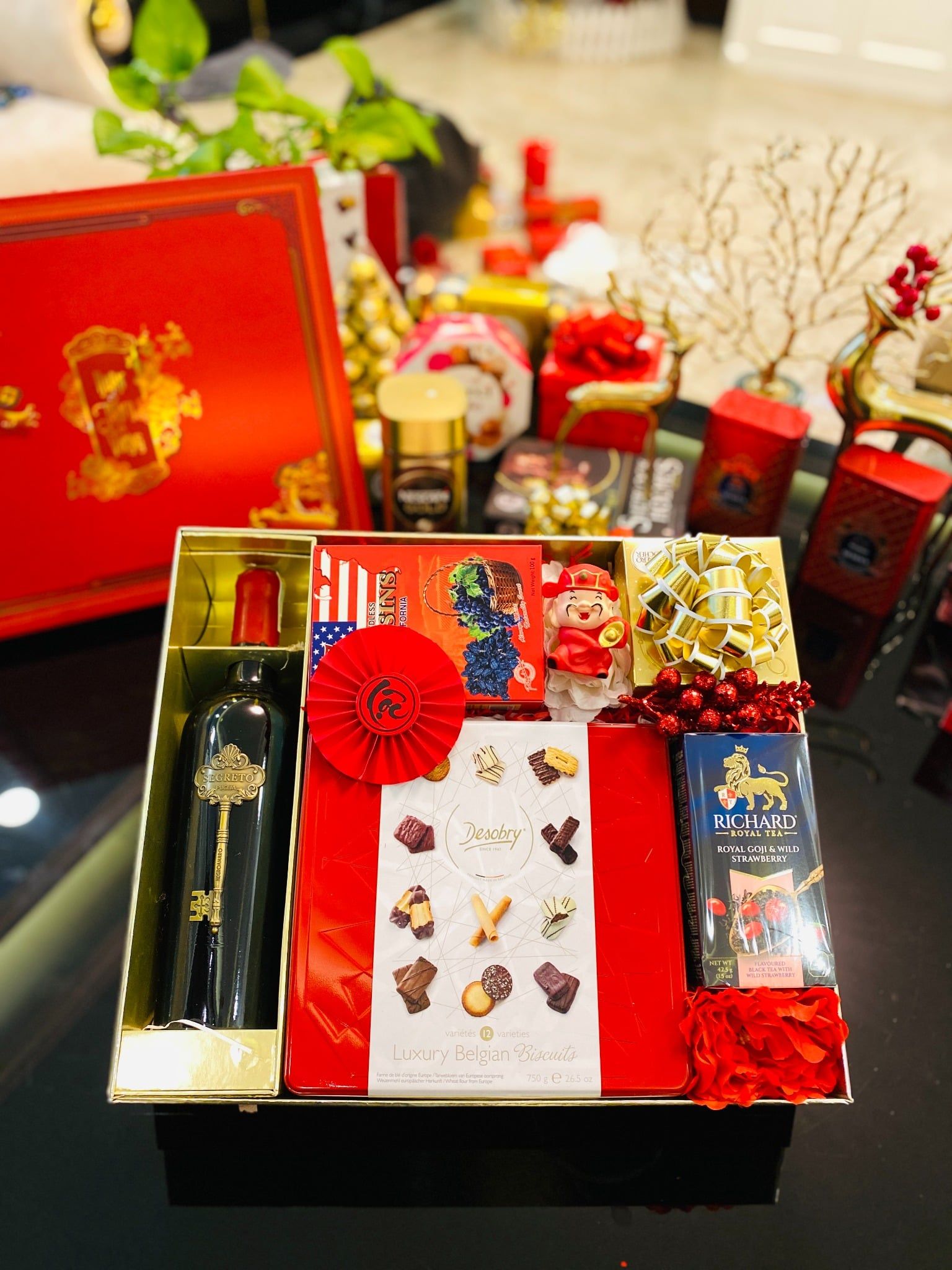 Thấu hiểu được điều đó, chúng tôi ra mắt những set quà Tết được chọn lọc kỹ lưỡng từ các loại kẹo bánh thơm ngon nổi tiếng nhập khẩu từ Châu Âu. Hình thức bắt mắt, màu sắc chủ đạo là màu đỏ biểu trưng cho sự may mắn dành cho gia chủ. Hộp đựng quà được thiết kế chắc chắn, sang trọng nhất định sẽ khiến cho người nhận cảm thấy hài lòng.