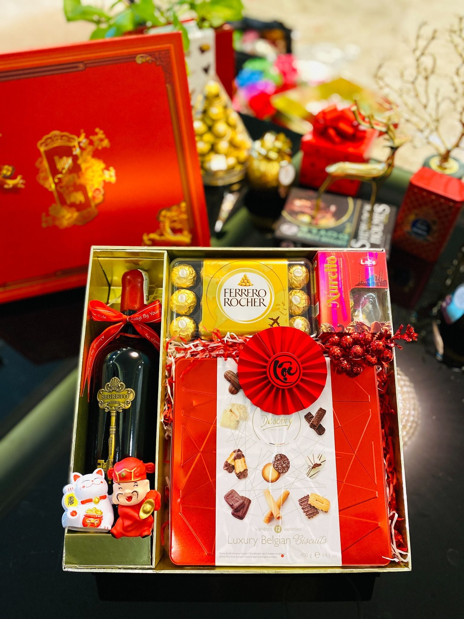 Thấu hiểu được điều đó, chúng tôi ra mắt những set quà Tết được chọn lọc kỹ lưỡng từ các loại kẹo bánh thơm ngon nổi tiếng nhập khẩu từ Châu Âu. Hình thức bắt mắt, màu sắc chủ đạo là màu đỏ biểu trưng cho sự may mắn dành cho gia chủ. Hộp đựng quà được thiết kế chắc chắn, sang trọng nhất định sẽ khiến cho người nhận cảm thấy hài lòng.