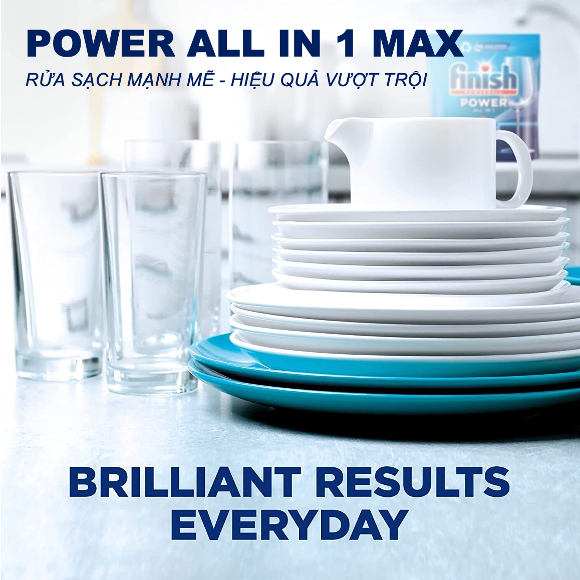 - Công thức Powerball nổi tiếng của Finish làm sáng bóng vật dụng và đồng thời giúp bảo vệ đồ thuỷ tinh, đồ ăn đắt tiền.